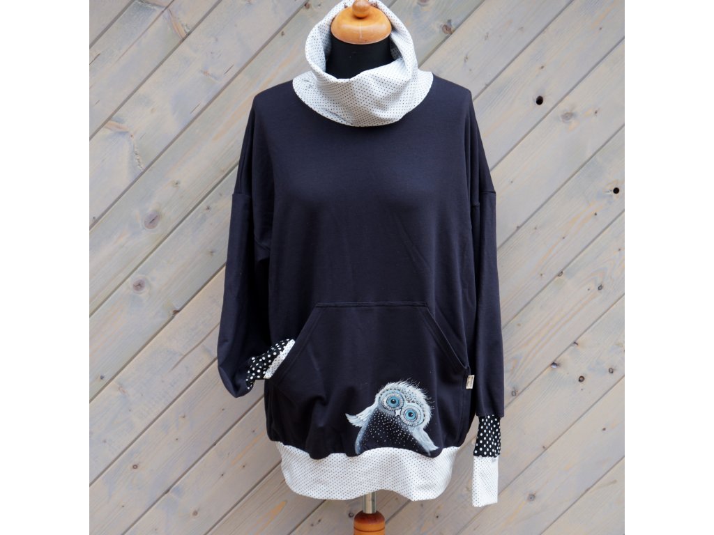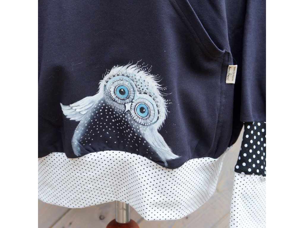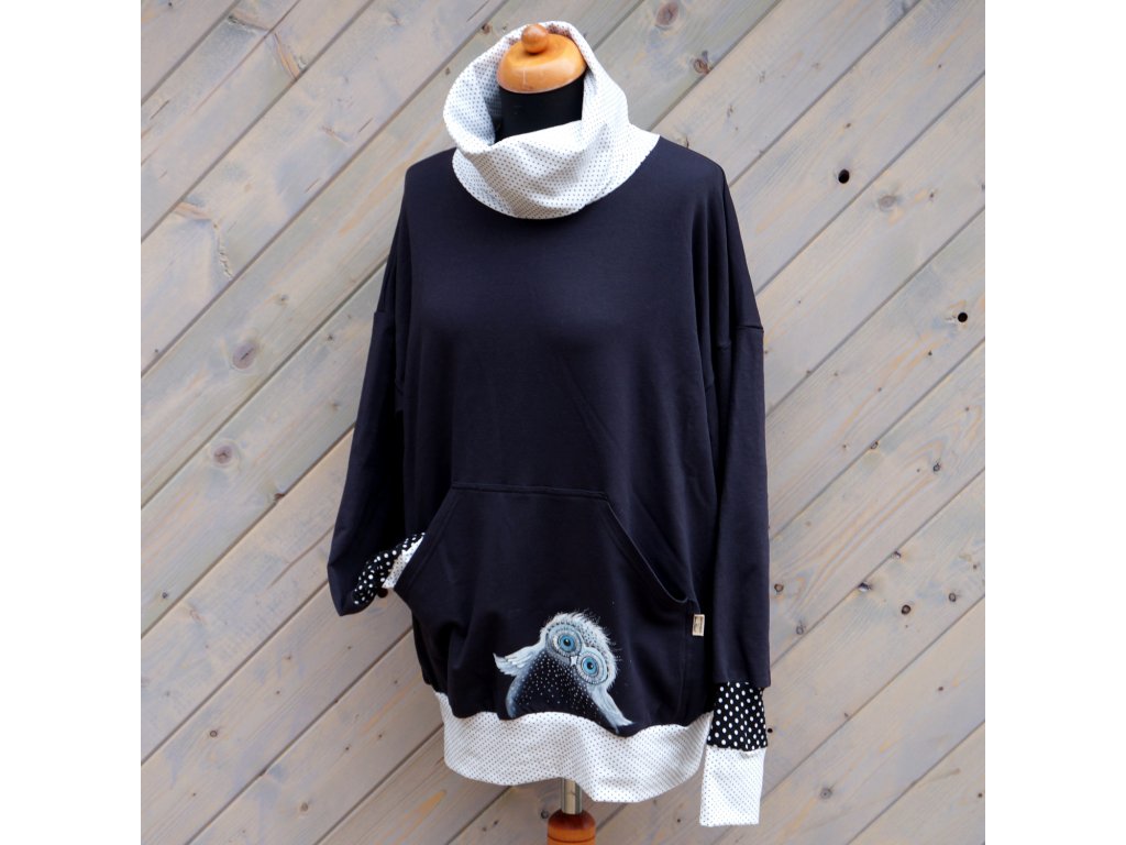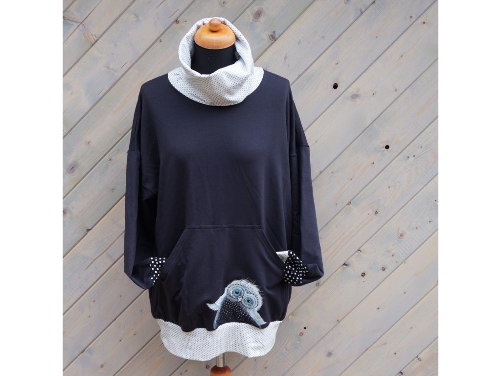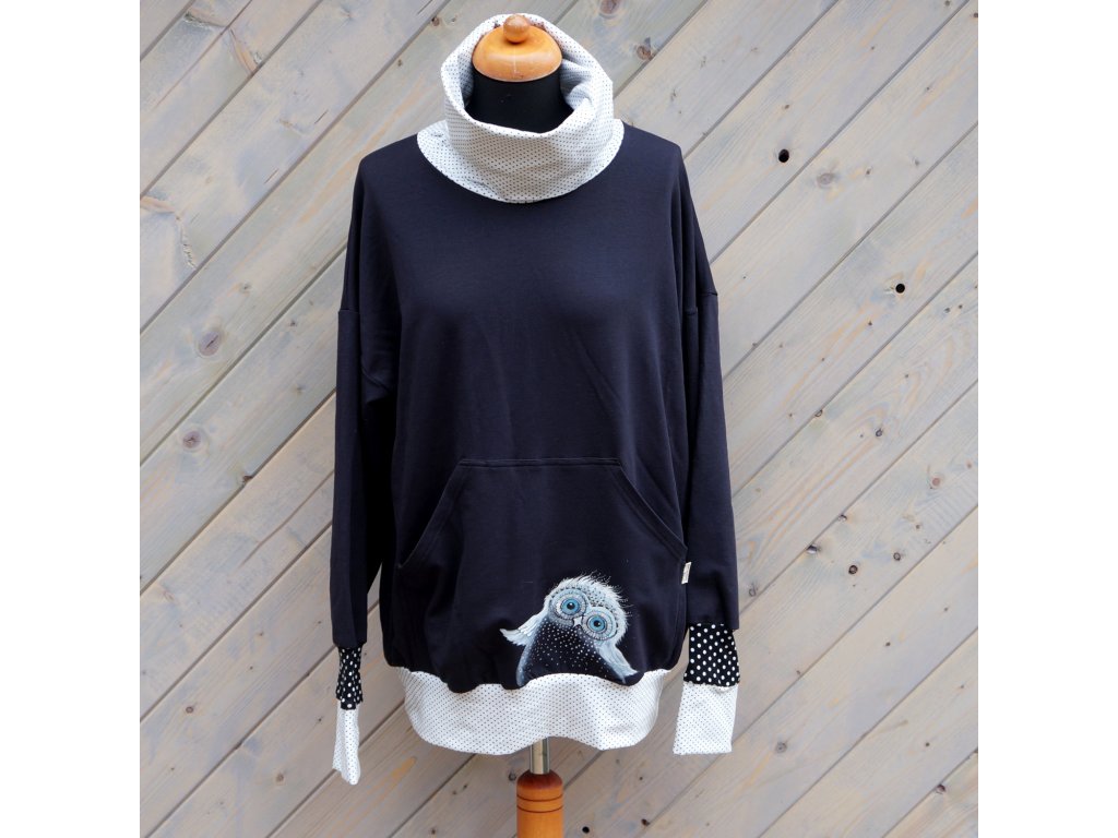 Mikina s klokaní kapsou a namalovanou sovičkou - jedna jediná, rolák a dlouhé rukávy s dírkou na paleček