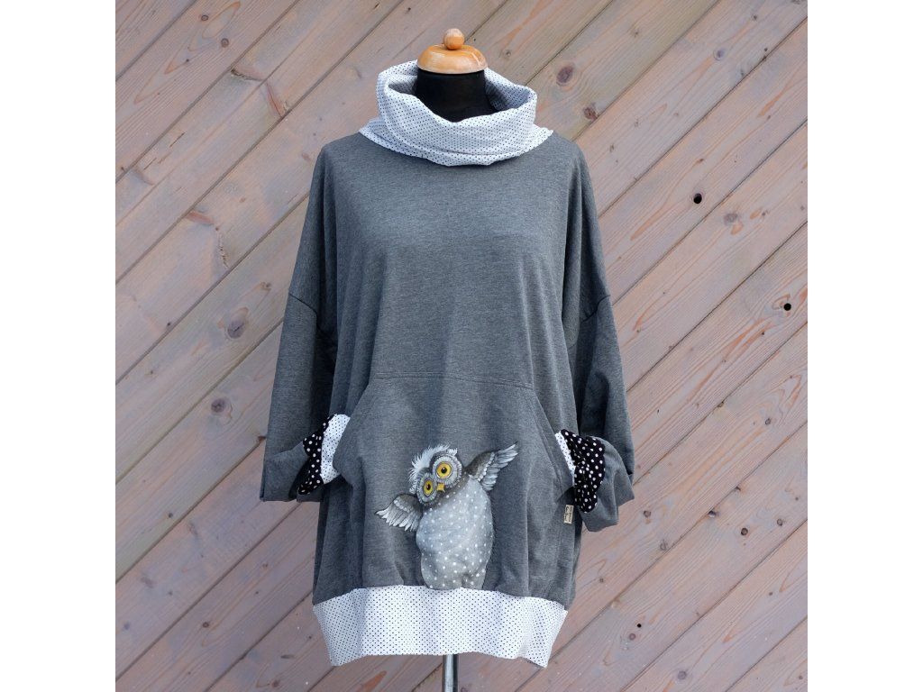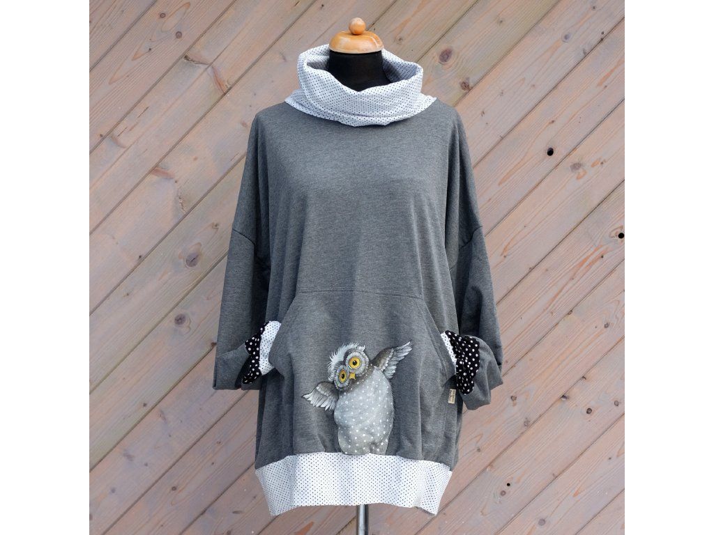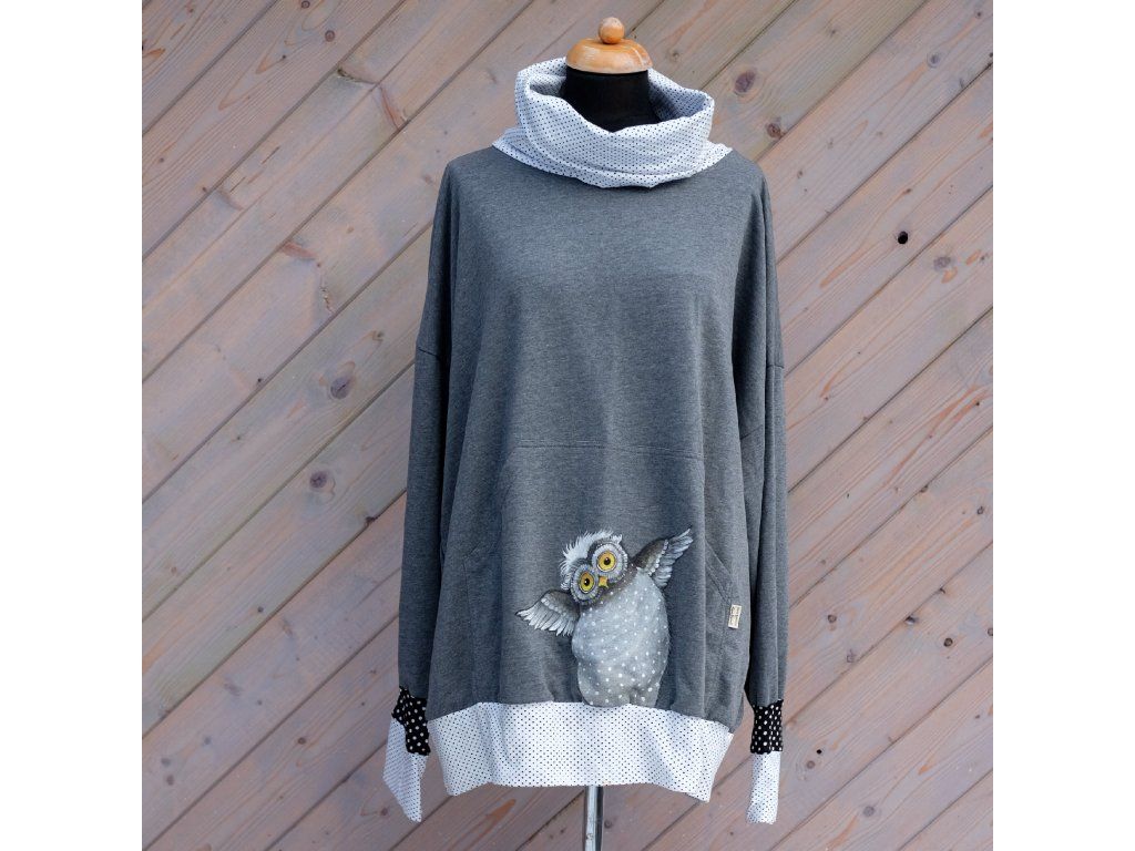 Mikina s klokaní kapsou a namalovanou sovou - jedna jediná