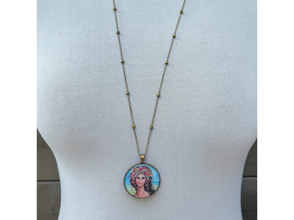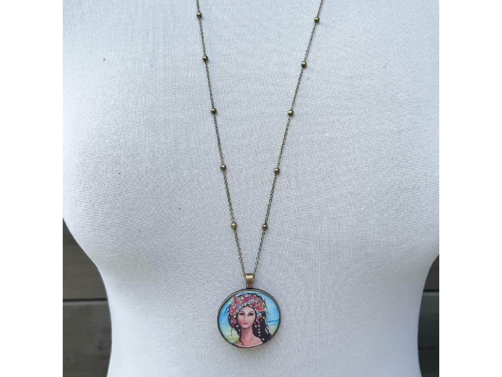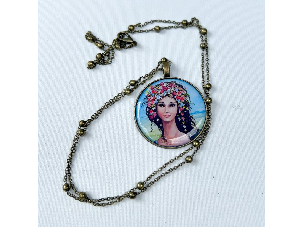 náhrdelník barvy bronzové. Řetízek je dlouhý 70 cm je krásný a pevný . Lůžko je velké 40 mm