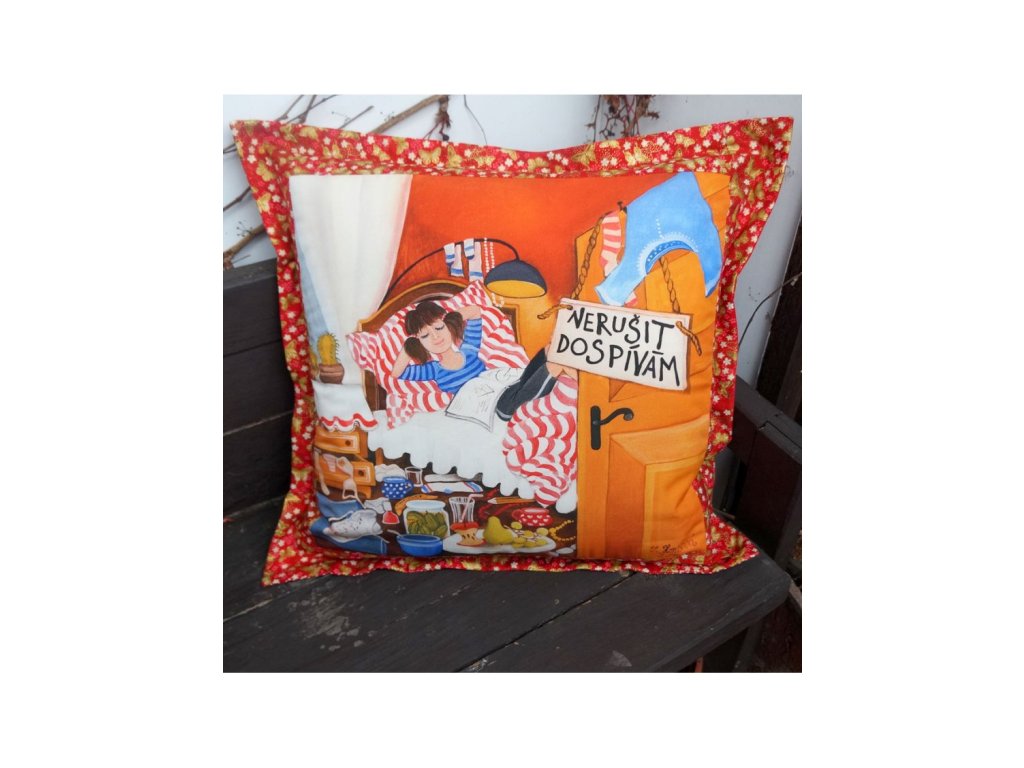 ze zadní strany bavlna barevně ladící s obrázkem. Kvalitní náplň -duté vlákno. Prát na 40 stupňů.