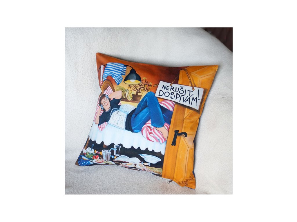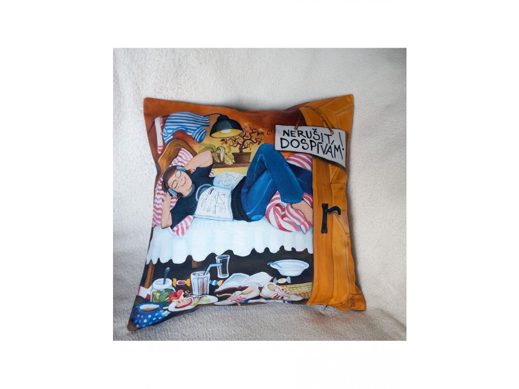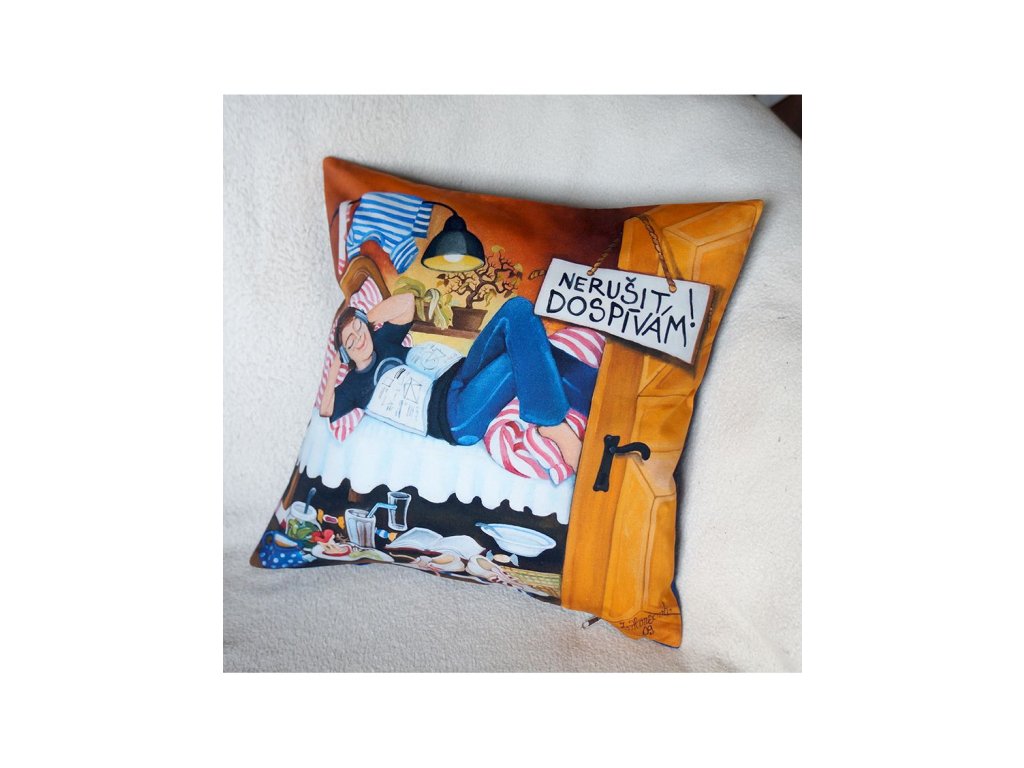 ze zadní strany bavlna barevně ladící s obrázkem. Kvalitní náplň -duté vlákno. Prát na 40 stupňů.