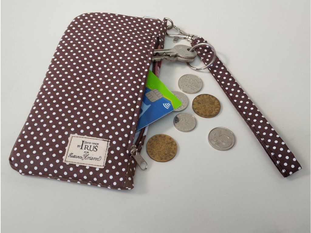Nové pozdro na telefon. Tento střih jsem vymyslela na dovolené, když jsem s sebou na pláž nechtěla nosit celou peněženku i telefon :-). Peníze jsem si vždy dala do pouzdra k telefonu, ale stalo se mi, že jsem je při vyndavání telefonu ztratila :-(. Takže jsem přijela domů a hned šla na to. Toto pouzdro je super, když jen tak vyběhnete na procházku, na pivko, na grilovačku, k vodě.... . Má na zadní straně samostatnou zipovou kapsičku, do které v pohodě dáte klíče, kartu, drobné i složenou bankovku. Pouzdro má navíc praktické poutko pro nošení na zápěstí, které ale díky karabince, která je zapnutá do malého poutečka s kovovým polokroužkem,  můžete sundat, když dáváte pouzdro do kabelky a frčíte někam i s kabelkou. Já jsem tedy absolutně spokojená a tak doufám, že udělám radost tímto praktickým kabelkopouzdrem i některým z vás :-).
