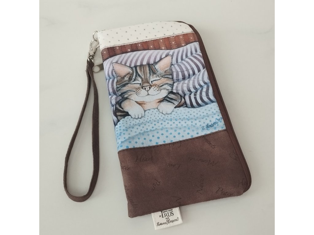 Nové pozdro na telefon. Tento střih jsem vymyslela na dovolené, když jsem s sebou na pláž nechtěla nosit celou peněženku i telefon :-). Peníze jsem si vždy dala do pouzdra k telefonu, ale stalo se mi, že jsem je při vyndavání telefonu ztratila :-(. Takže jsem přijela domů a hned šla na to. Toto pouzdro je super, když jen tak vyběhnete na procházku, na pivko, na grilovačku, k vodě.... . Má na zadní straně samostatnou zipovou kapsičku, do které v pohodě dáte klíče, kartu, drobné i složenou bankovku. Pouzdro má navíc praktické poutko pro nošení na zápěstí, které ale díky karabince, která je zapnutá do malého poutečka s kovovým polokroužkem,  můžete sundat, když dáváte pouzdro do kabelky a frčíte někam i s kabelkou. Já jsem tedy absolutně spokojená a tak doufám, že udělám radost tímto praktickým kabelkopouzdrem i některým z vás :-).