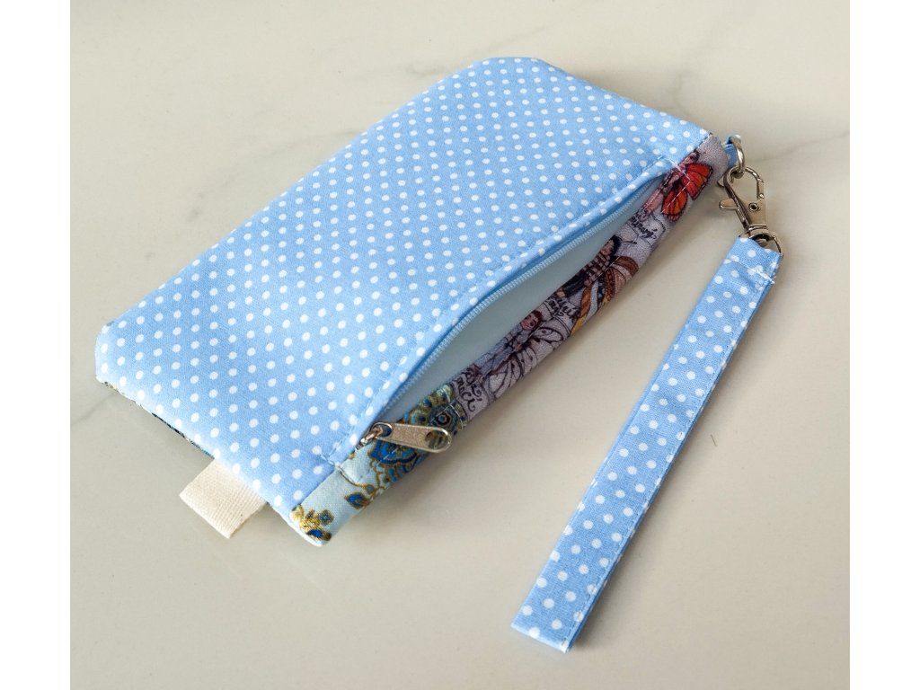 Nové pozdro na telefon. Tento střih jsem vymyslela na dovolené, když jsem s sebou na pláž nechtěla nosit celou peněženku i telefon :-). Peníze jsem si vždy dala do pouzdra k telefonu, ale stalo se mi, že jsem je při vyndavání telefonu ztratila :-(. Takže jsem přijela domů a hned šla na to. Toto pouzdro je super, když jen tak vyběhnete na procházku, na pivko, na grilovačku, k vodě.... . Má na zadní straně samostatnou zipovou kapsičku, do které v pohodě dáte klíče, kartu, drobné i složenou bankovku. Pouzdro má navíc praktické poutko pro nošení na zápěstí, které ale díky karabince, která je zapnutá do malého poutečka s kovovým polokroužkem, můžete sundat, když dáváte pouzdro do kabelky a frčíte někam i s kabelkou. Já jsem tedy absolutně spokojená a tak doufám, že udělám radost tímto praktickým kabelkopouzdrem i některým z vás :-).