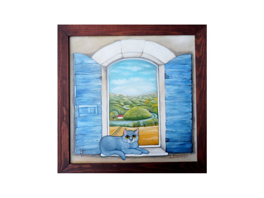 olejomalba na plátně 48 x48 zarámováno v jednoduchém dřevěném rámu
