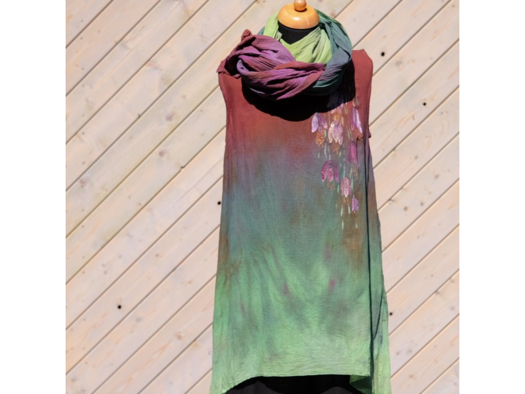 cípatá halenka bez rukávů dlouhá 100 cm a velký šál široký 60 cm a dlouhý 200 cm na zachumlání nebo ozdobení.
