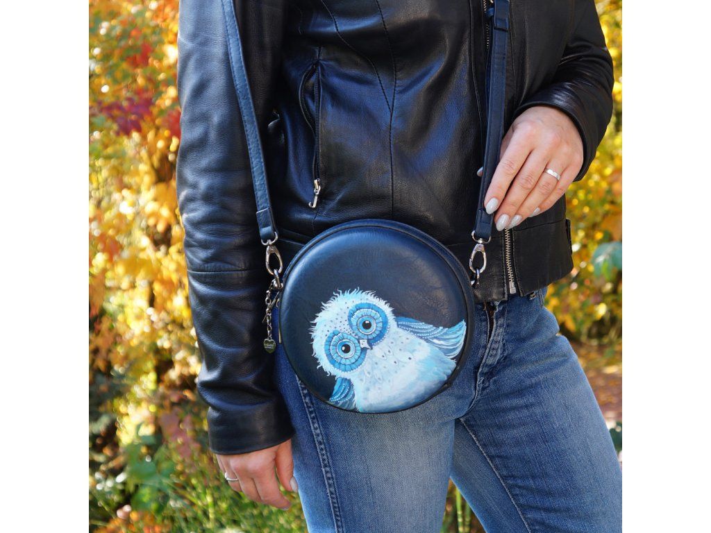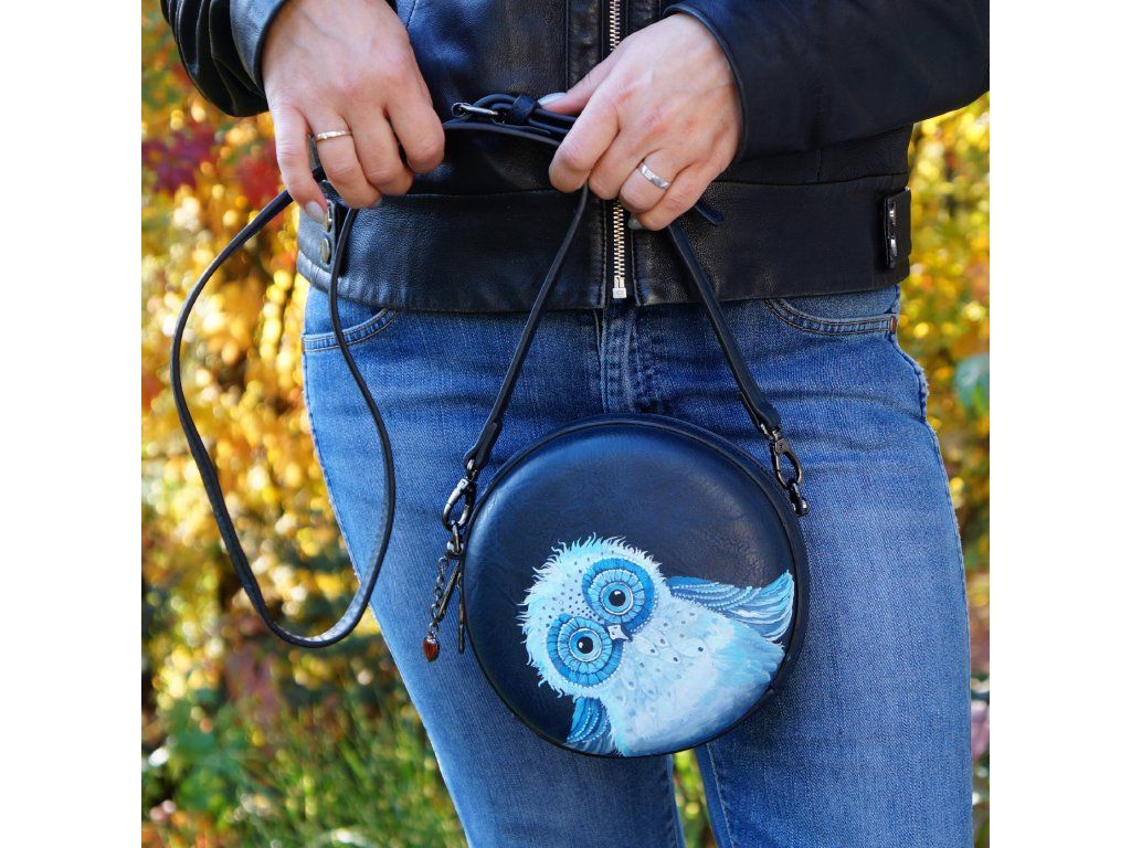 Malá kulatá taška  s malovanou sovou- jedna jediná