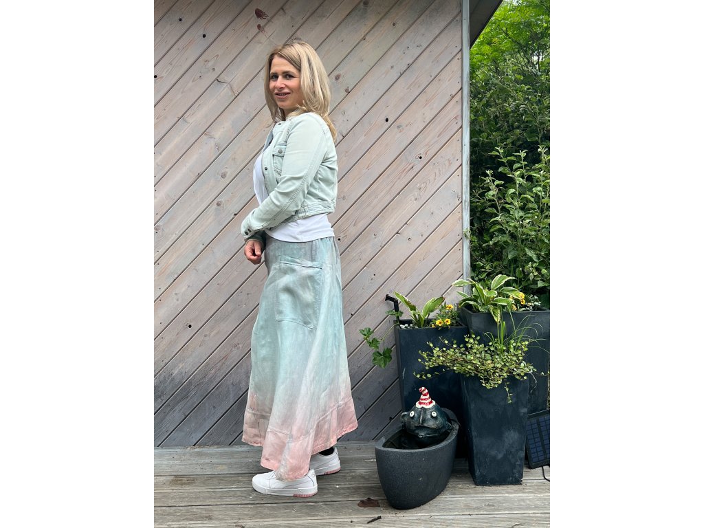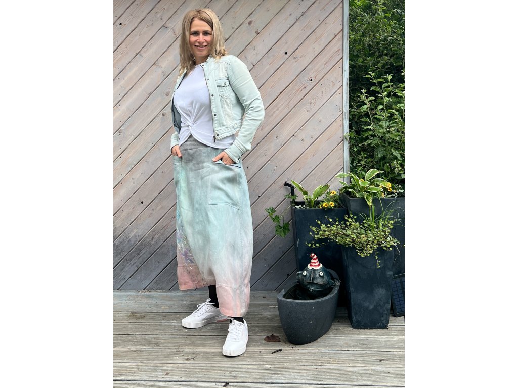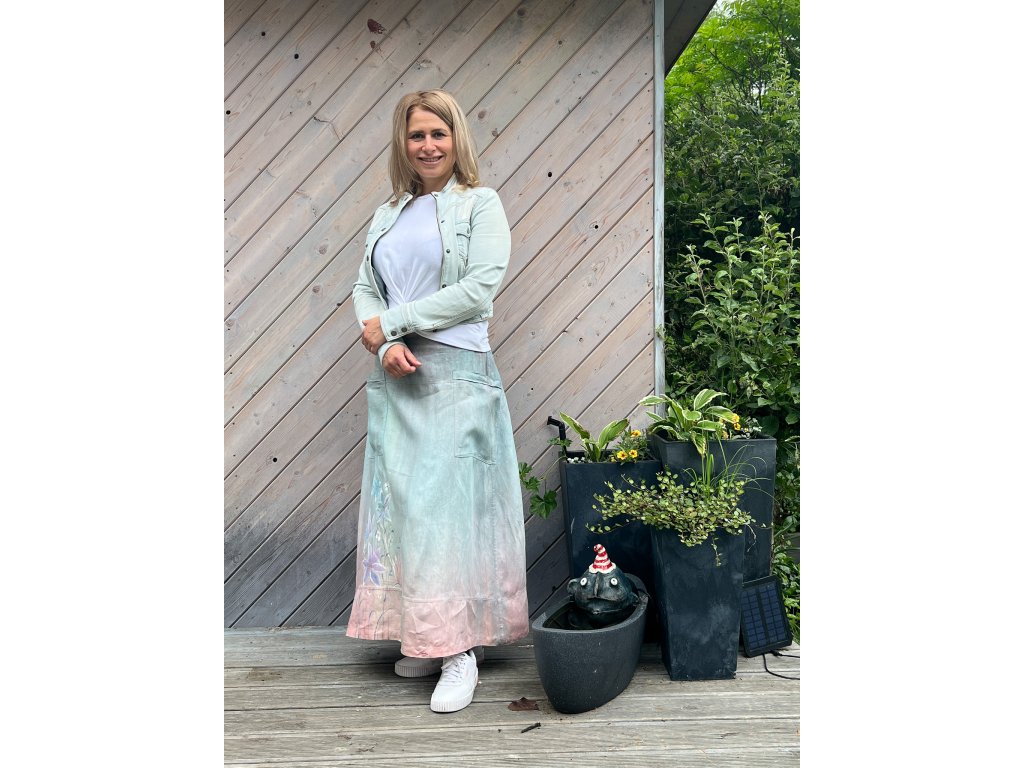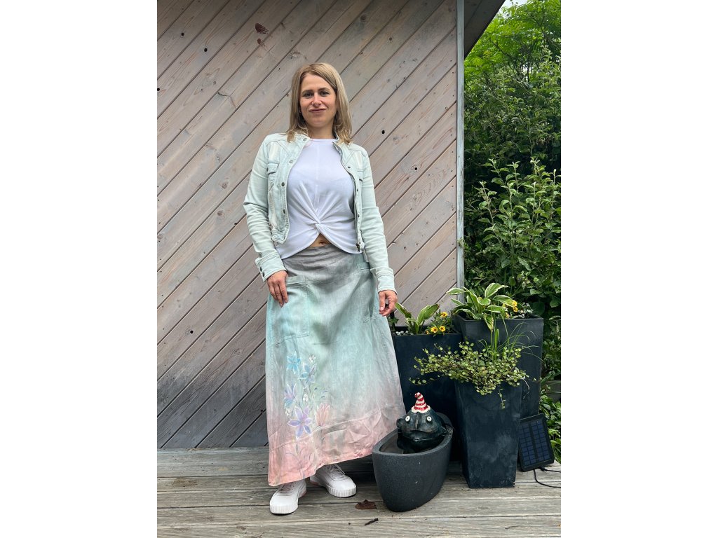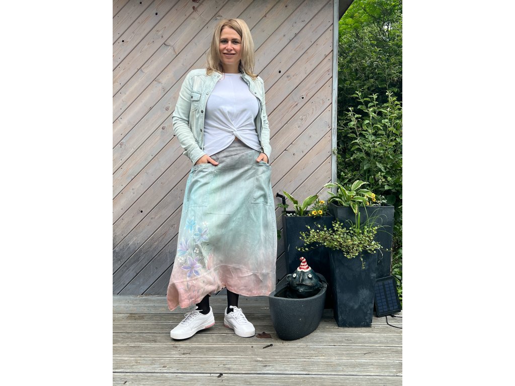 já jsem sukni ručně nabarvila - vlastně namalovala několika odstíny barev. Barvy jsou kvalitní reaktivní zapouštějí se do vlákna neobalují vlákno takže drží dokonale.. jen se Vám ještě vyplaví nějaká nedokonale vymáchaná barva.
