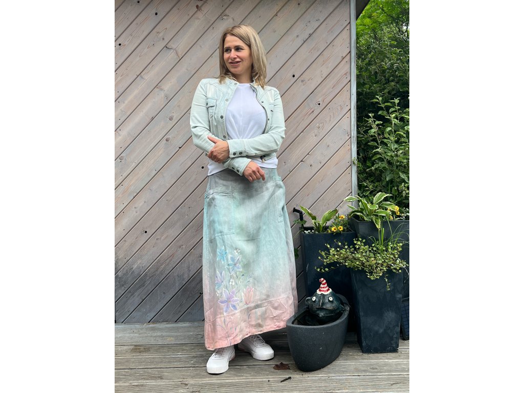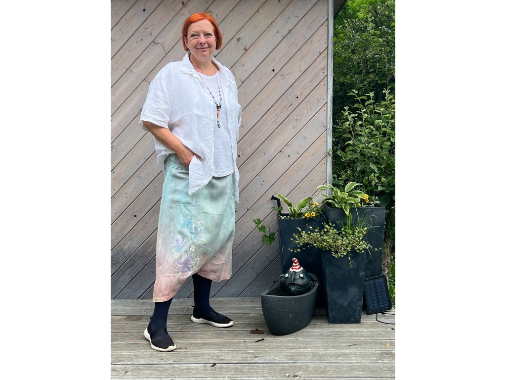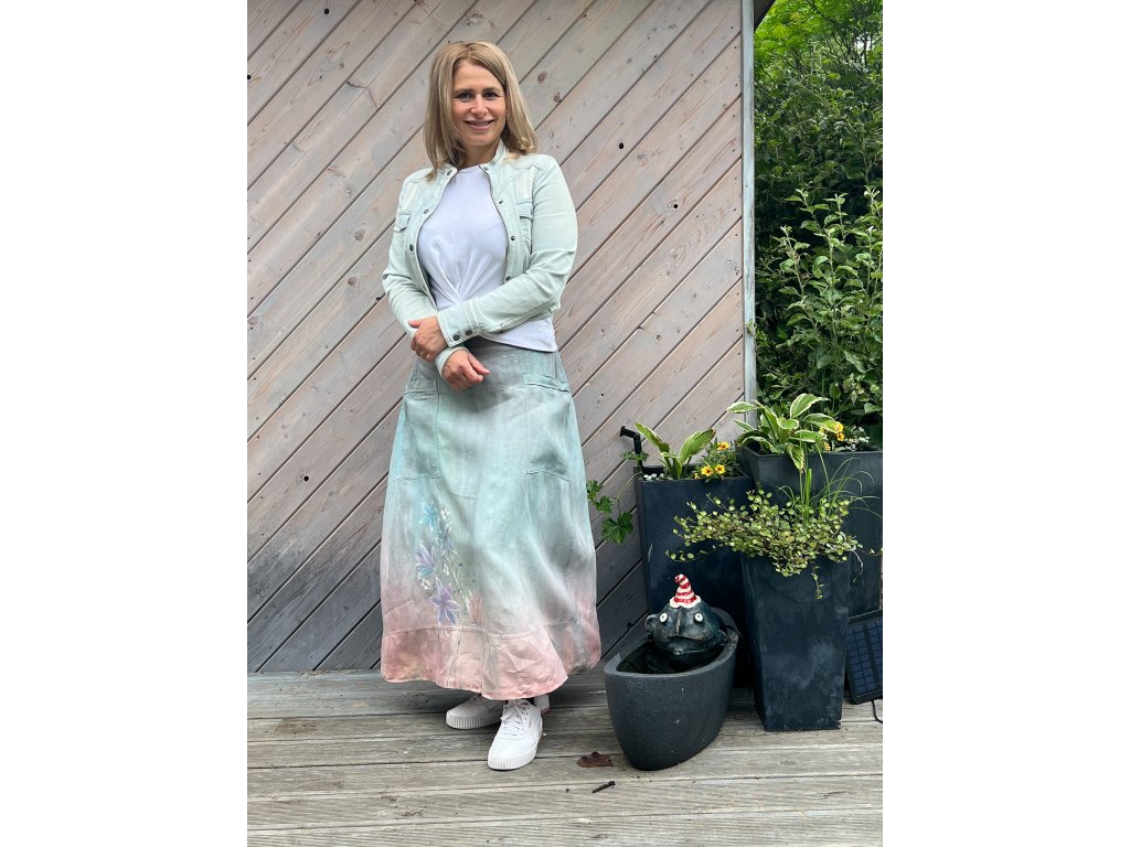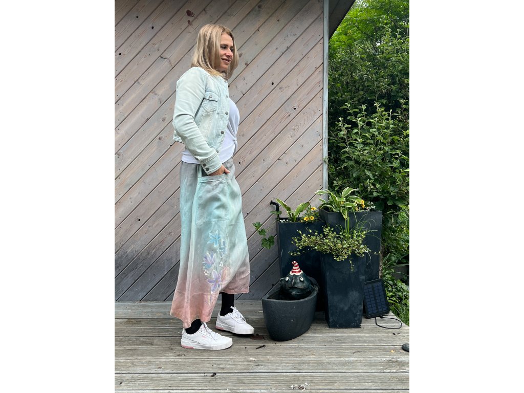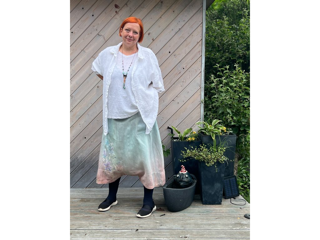 já jsem sukni ručně nabarvila - vlastně namalovala několika odstíny barev. Barvy jsou kvalitní reaktivní zapouštějí se do vlákna neobalují vlákno takže drží dokonale.. jen se Vám ještě vyplaví nějaká nedokonale vymáchaná barva.