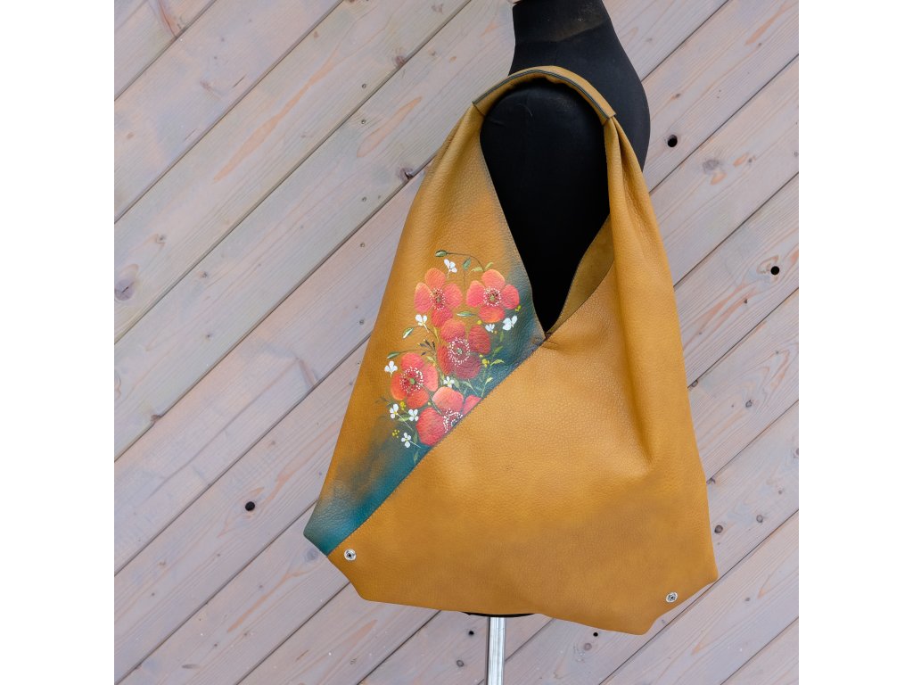 materiál je Eko kůže Kování je v barvě nerez. Taška je jedna jediná:-). Taška je mnou malovaná.