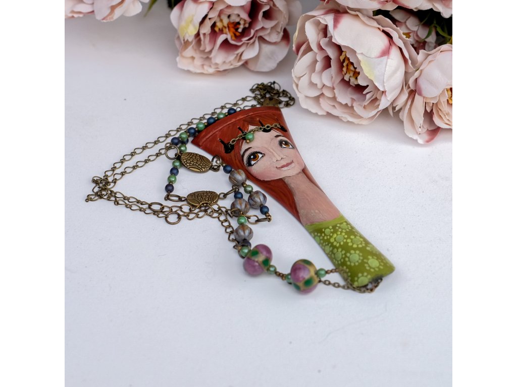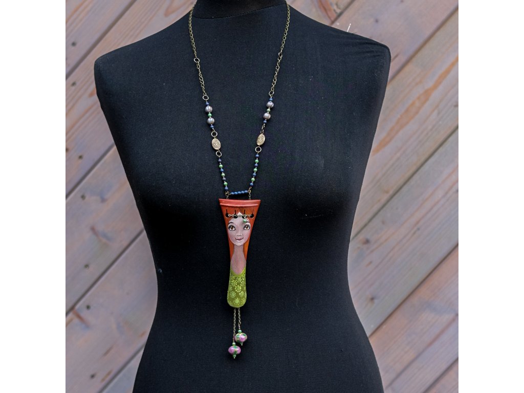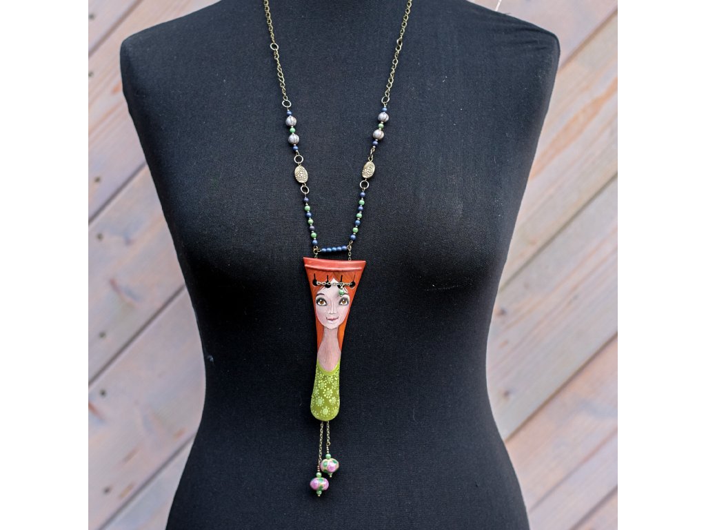 Originální náhrdelník malovaný na houslovém struníku. Struník je dřevěný, netroufnu si říct z jakého je dřeva.
