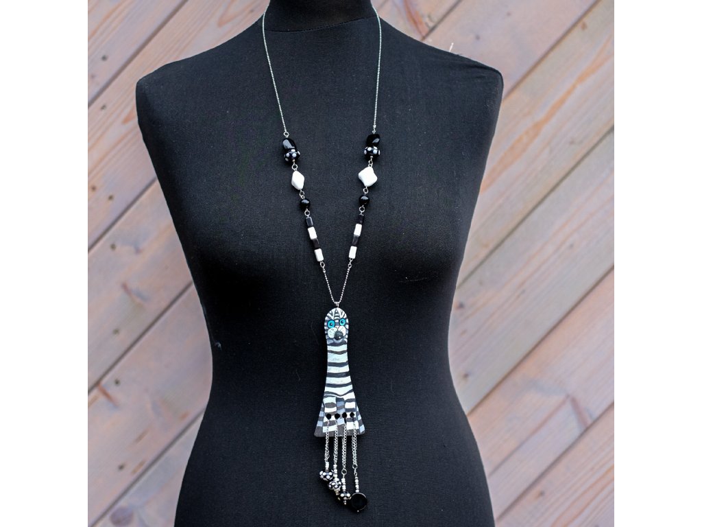 Originální náhrdelník malovaný na houslovém struníku. Struník je dřevěný, netroufnu si říct z jakého je dřeva.