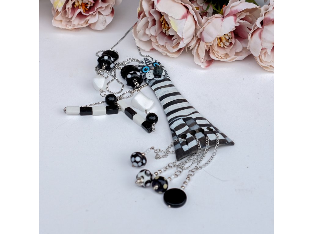 Je ozdobený krásnými,zajímavými korálky a ručně vinutými korálky - vinutkami. Každý korálek je jedinečný ručně dělaný.