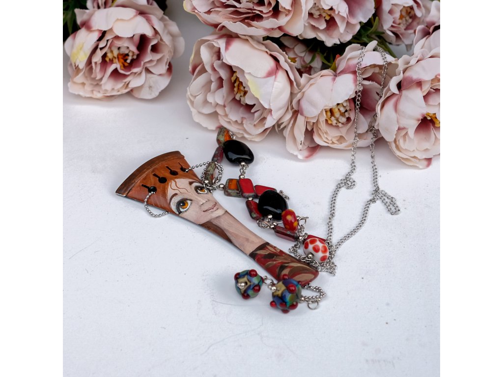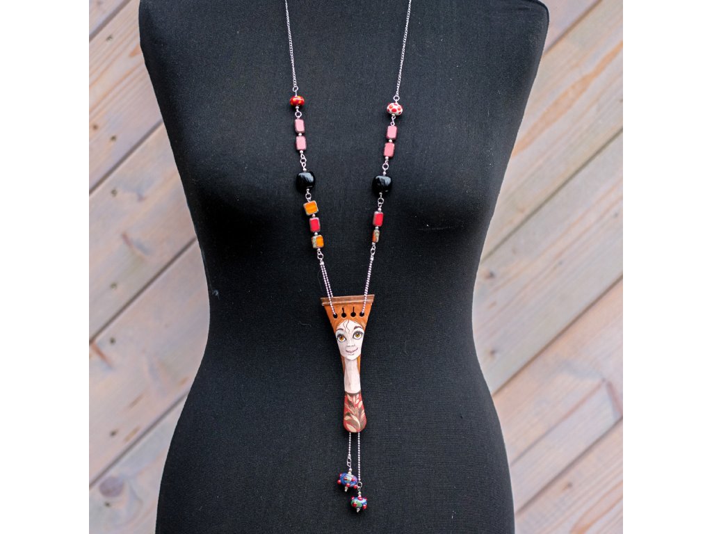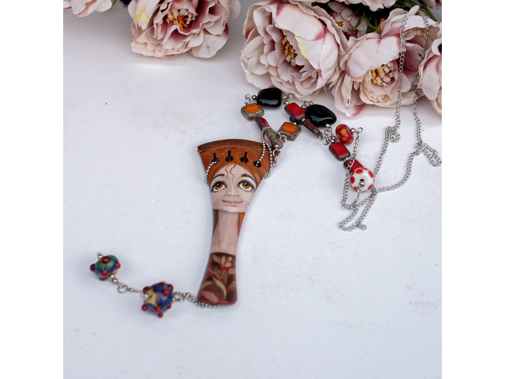 Originální náhrdelník malovaný na houslovém struníku. Struník je dřevěný, netroufnu si říct z jakého je dřeva.