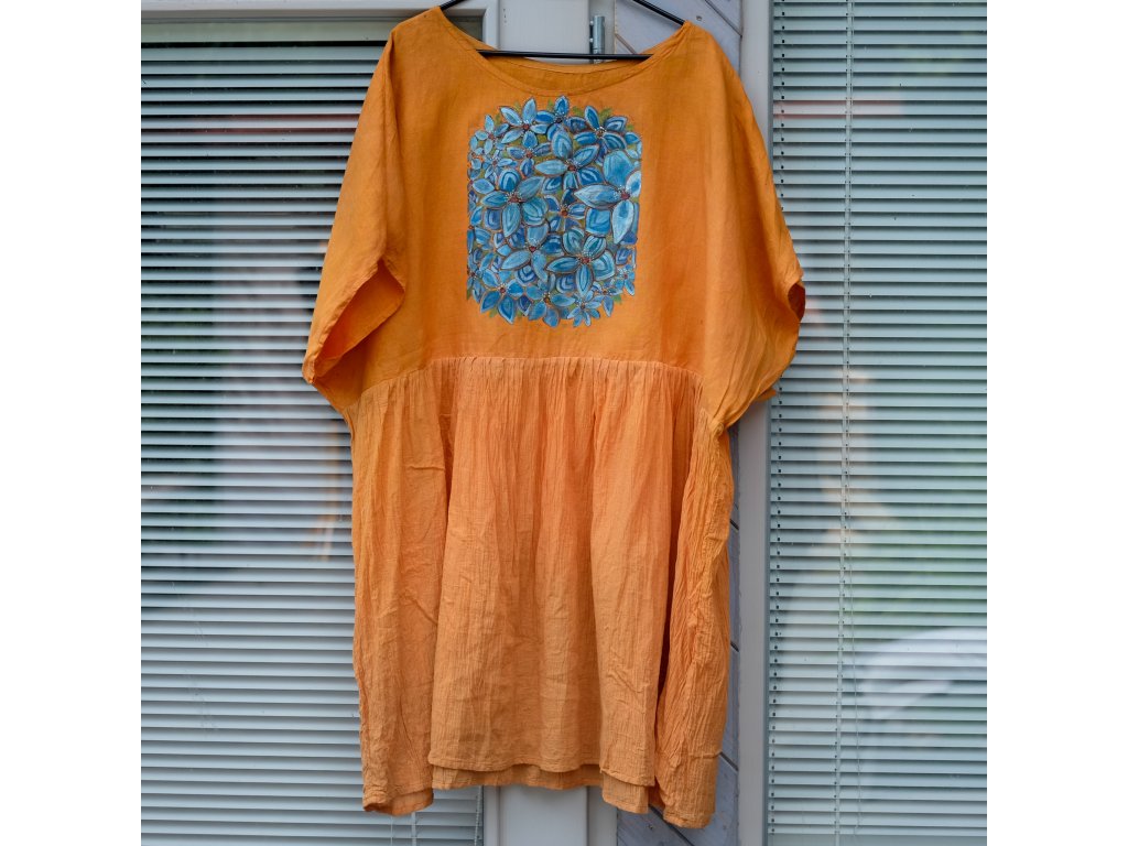 Halenku jsem ručně nabarvila, barvy vytváří krásné struktury a poté domalovala krásnými metalickými barvami