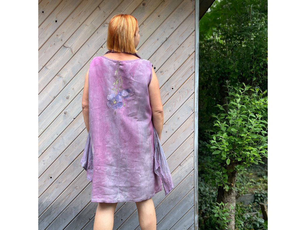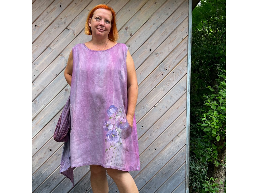 Novinka- nádherné originální lněné šaty (švadlence Radce se moc povedly), ručně barvené (několik odstínů modré a tyrkysové) a ručně malované. Jsou jen jedny jediné, stejné nepotkáte.