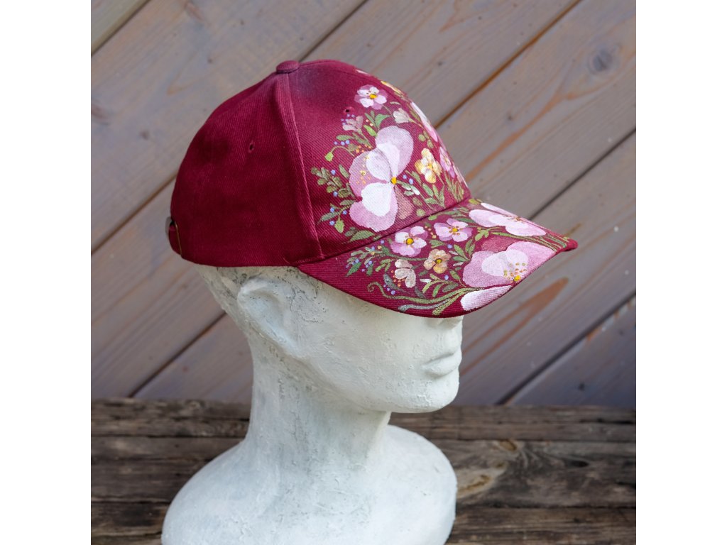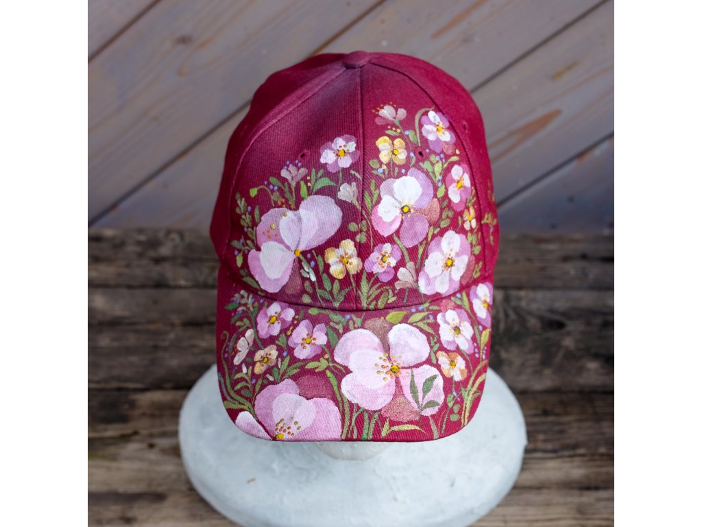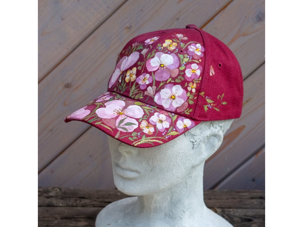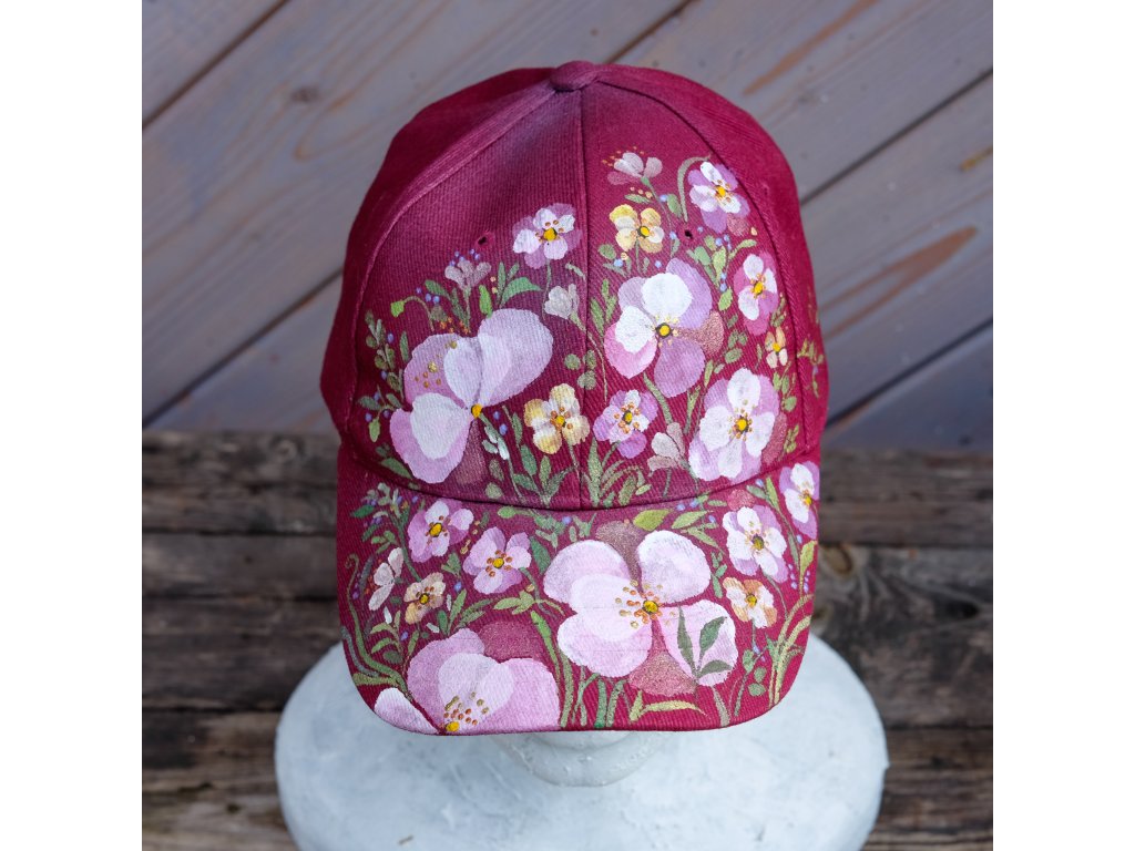 Čepice je nejdříve dobarvená- dostínovaná a poté jsem ji omalovala kytičkami. Každá je jen jedna jediná.