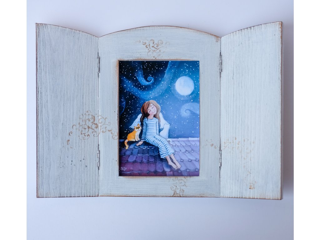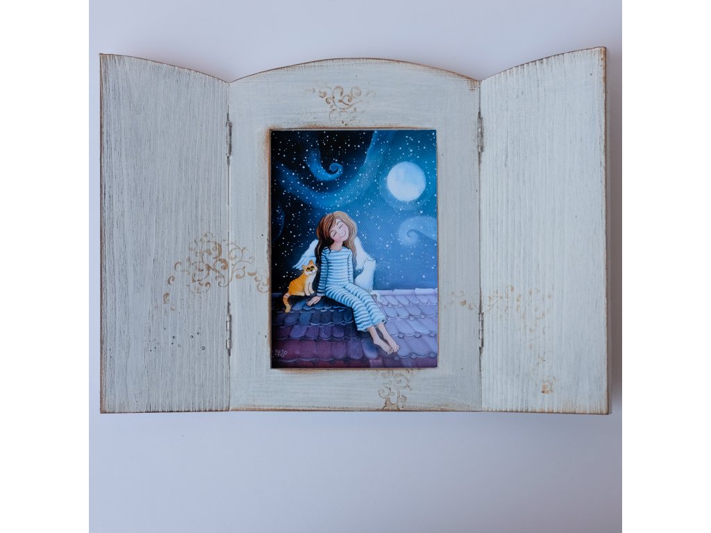 rámeček je několikrát natřený broušený domalovávaný a patinovaný..