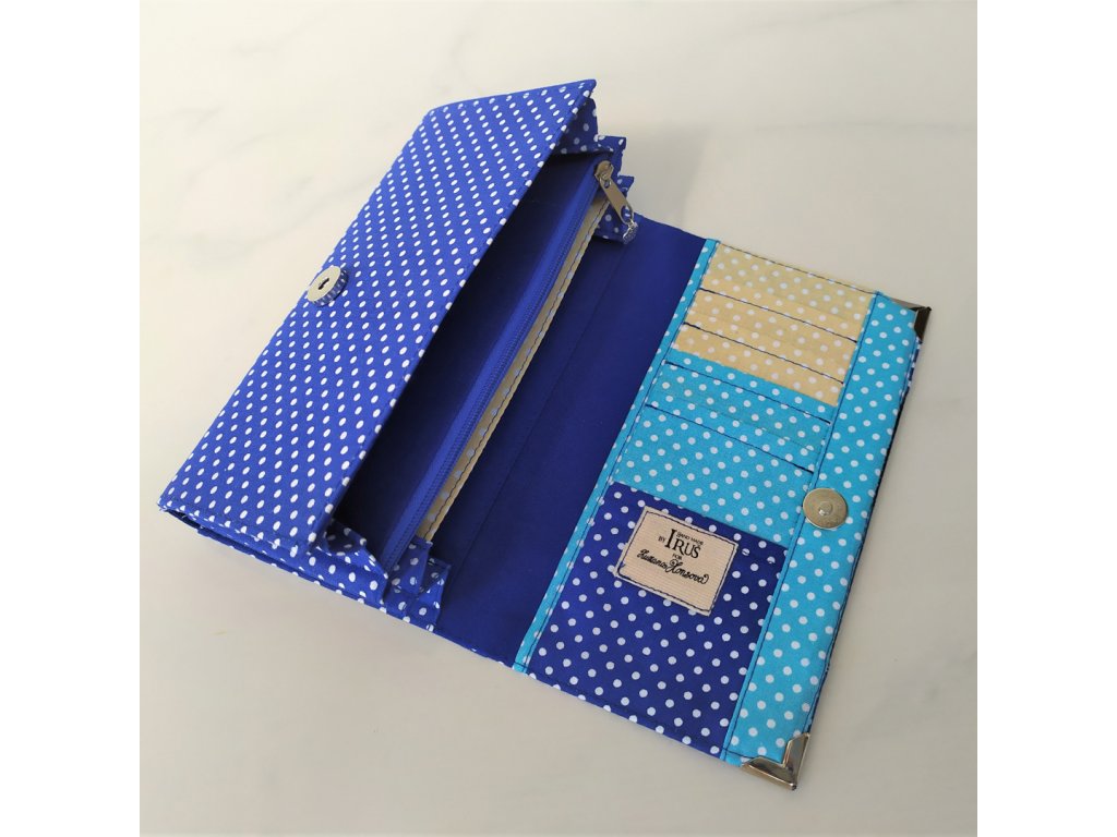 Peněženka má zapínaní na magnetku. Má pět kapsiček na bankovky a doklady. Jednu zipovou kapsičku na kovové mince a dvě samostatné větší kapsy na karty kde se do jedné vejde karet i více.a na překlopce 5 samostatných kapsiček