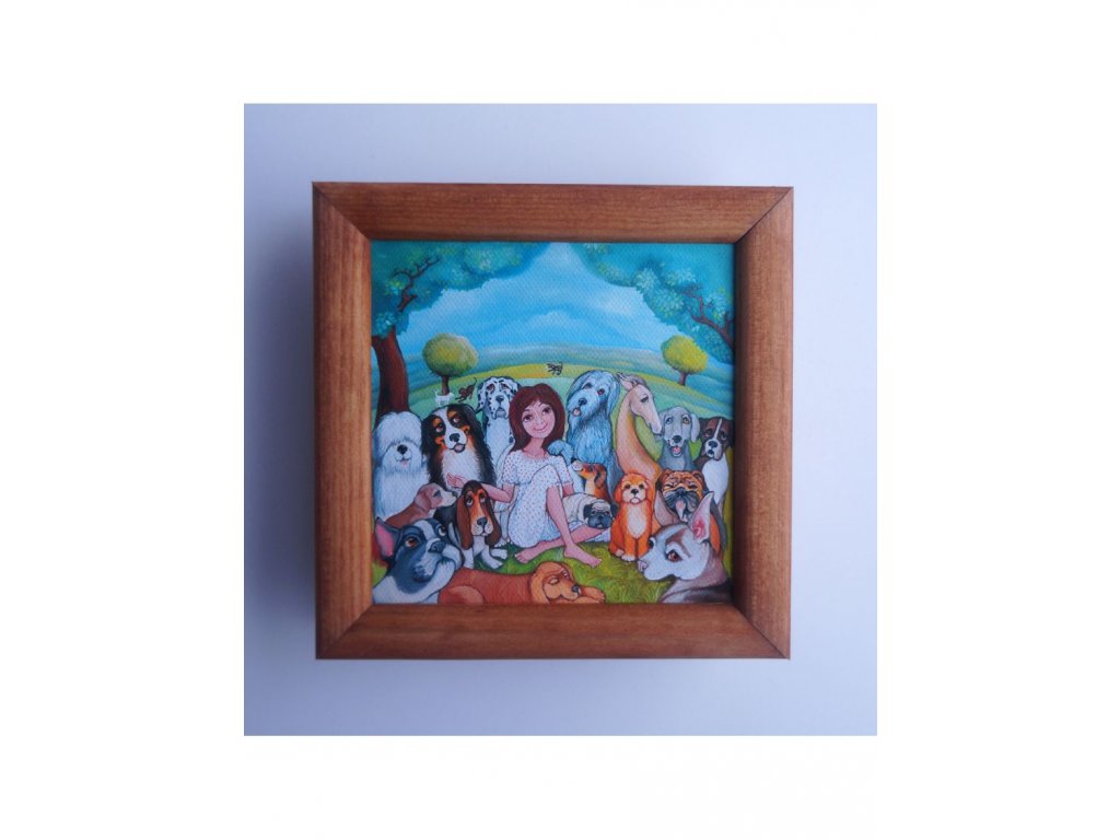 Obrázek je velký 13,5 x 13,5 cm, (obrázek 10 x 10cm)rámovaný v jednoduchém dřevěném rámečku.