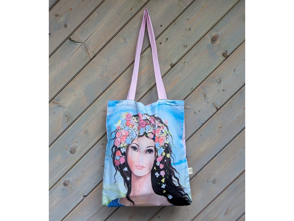 Taška je z bavlněného plátna s mým obrázkem zadní strana je z barevně ladící látky.