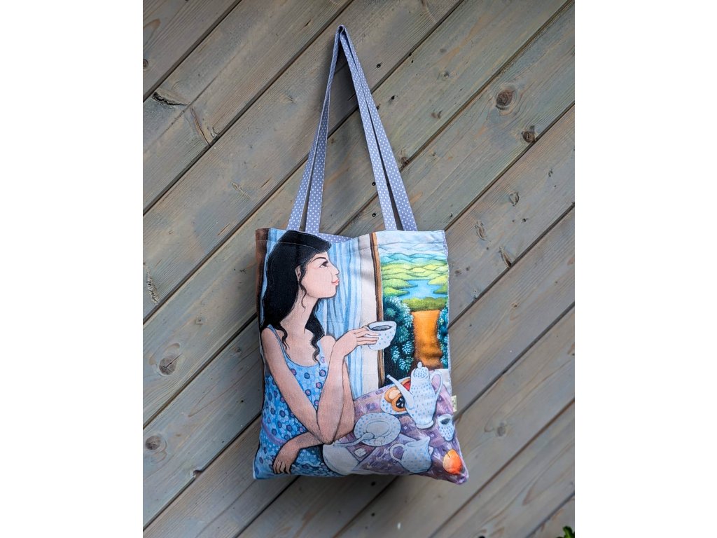 Taška je z bavlněného plátna s mým obrázkem zadní strana je z barevně ladící látky.