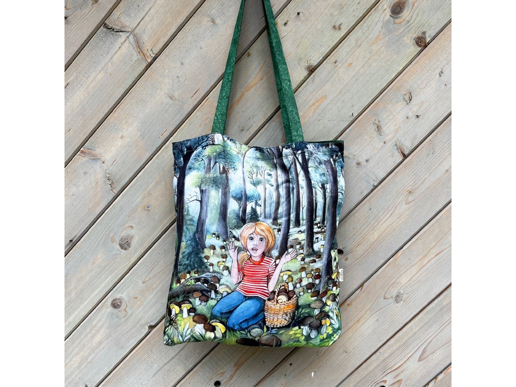 Taška je z bavlněného plátna s mým obrázkem zadní strana je z barevně ladící látky.