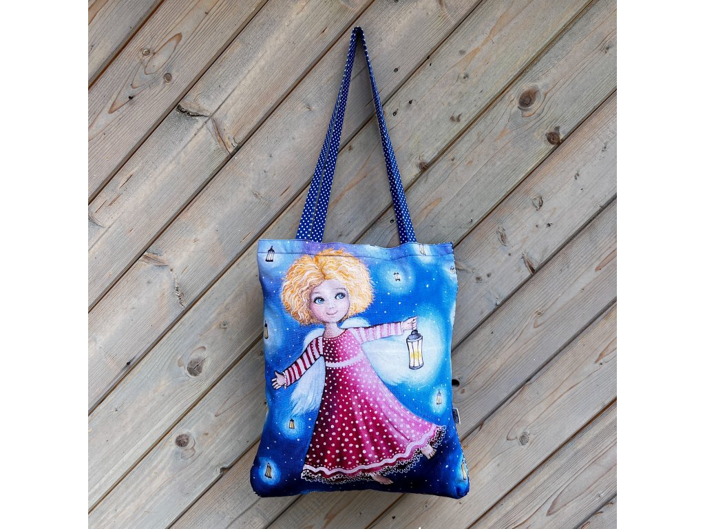 Taška je z bavlněného plátna s mým obrázkem zadní strana je z barevně ladící látky.