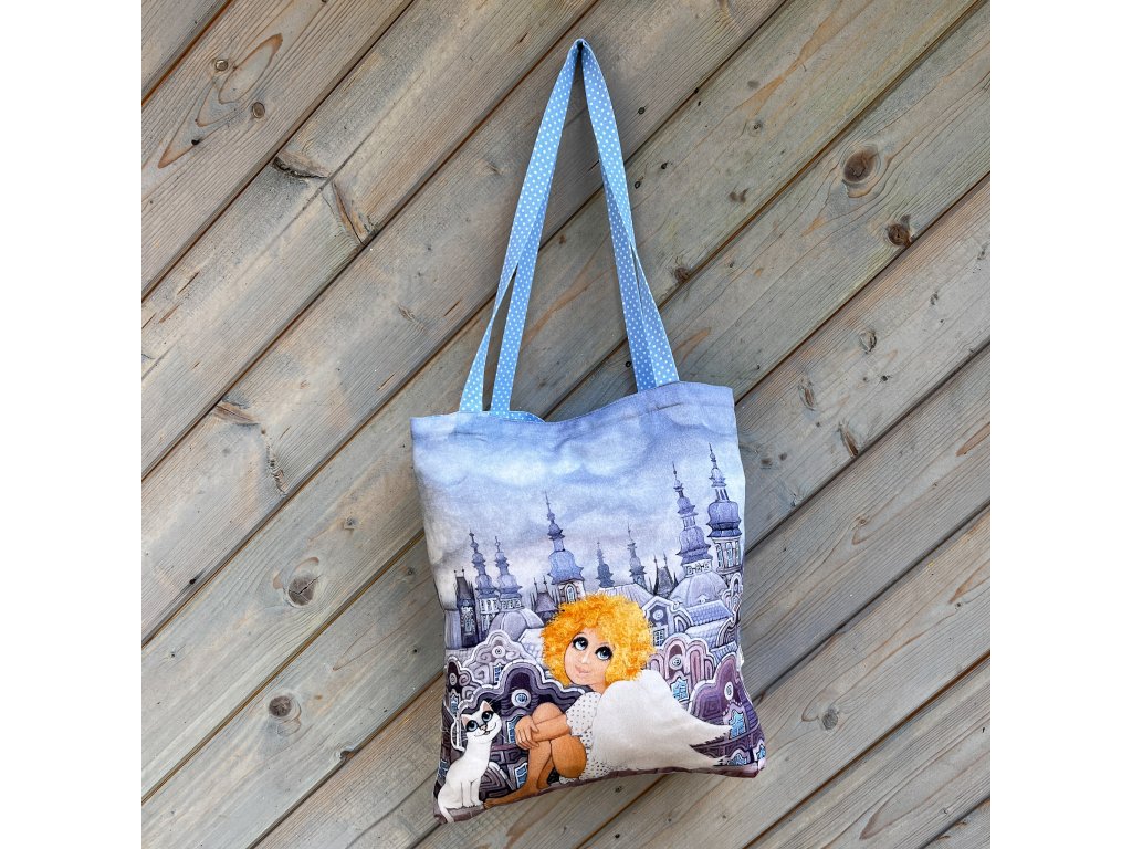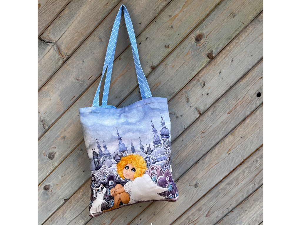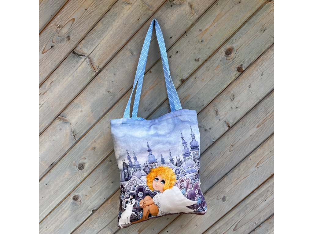 Taška je z bavlněného plátna s mým obrázkem zadní strana je z barevně ladící látky.