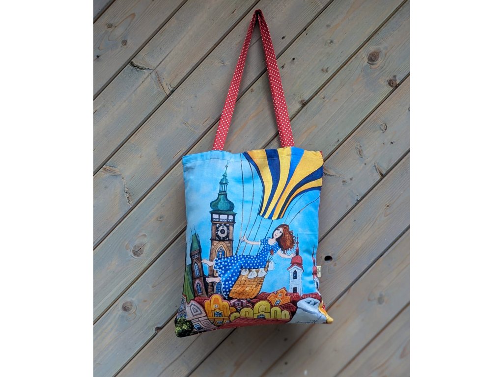 Taška je z bavlněného plátna s mým obrázkem zadní strana je z barevně ladící látky.