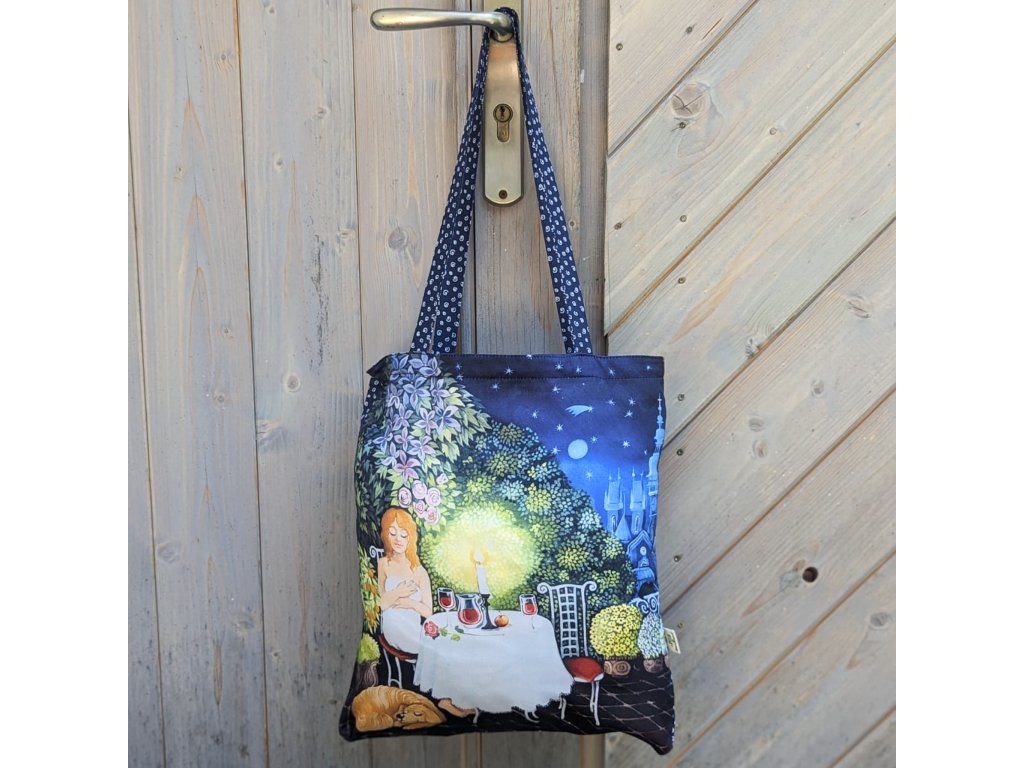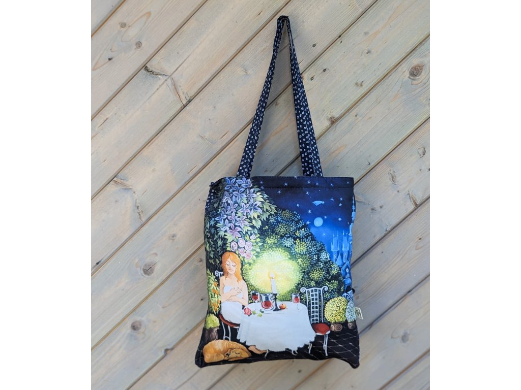 Taška je z bavlněného plátna s mým obrázkem zadní strana je z barevně ladící látky.