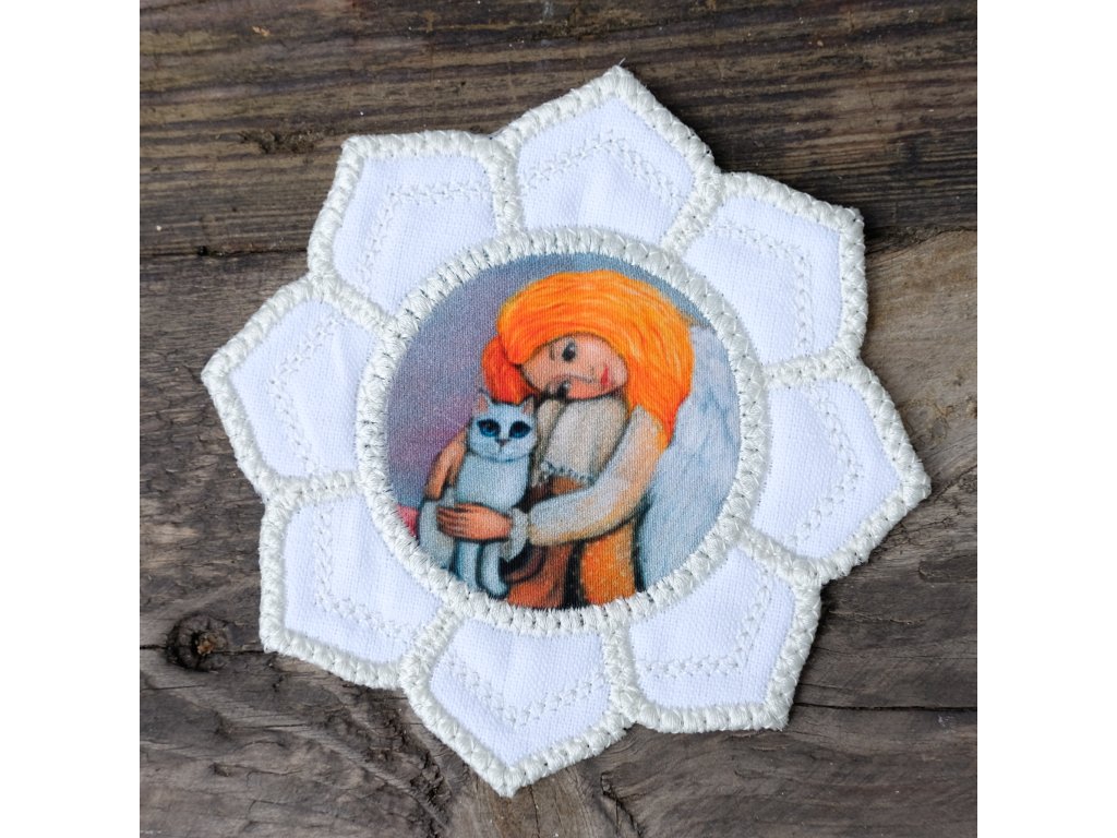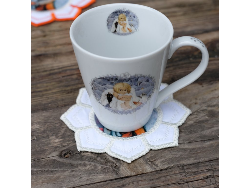 podkafíčko 12 cm - vyztuženo - bavlna .Podkafíčko vyšívané s mým obrázkem od precizní a šikovné švadlenky Ireny
