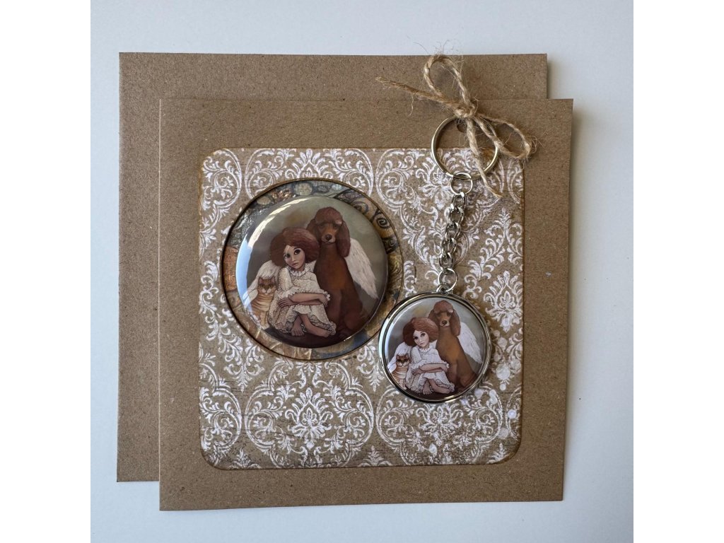 Přáníčko s magnetem a klíčenkou Andělské trio