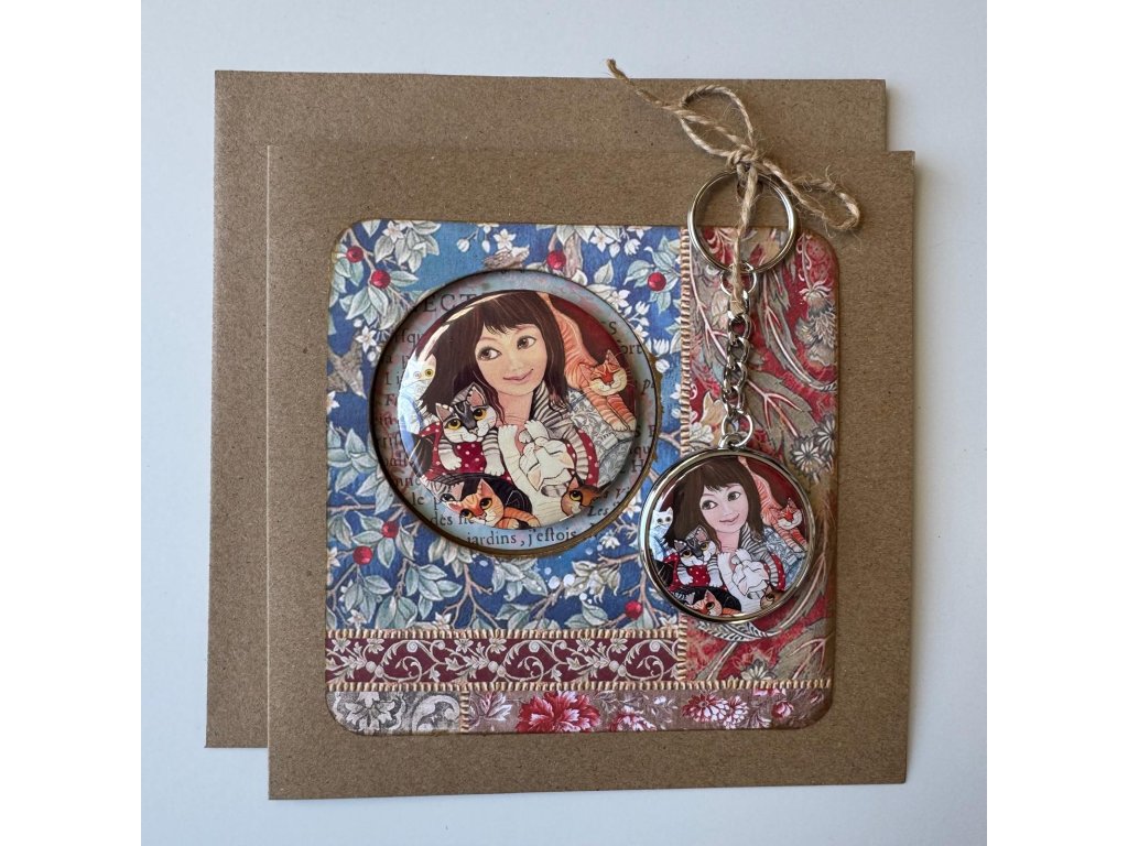 Přáníčko s magnetem a klíčenkou Chovatelka koček