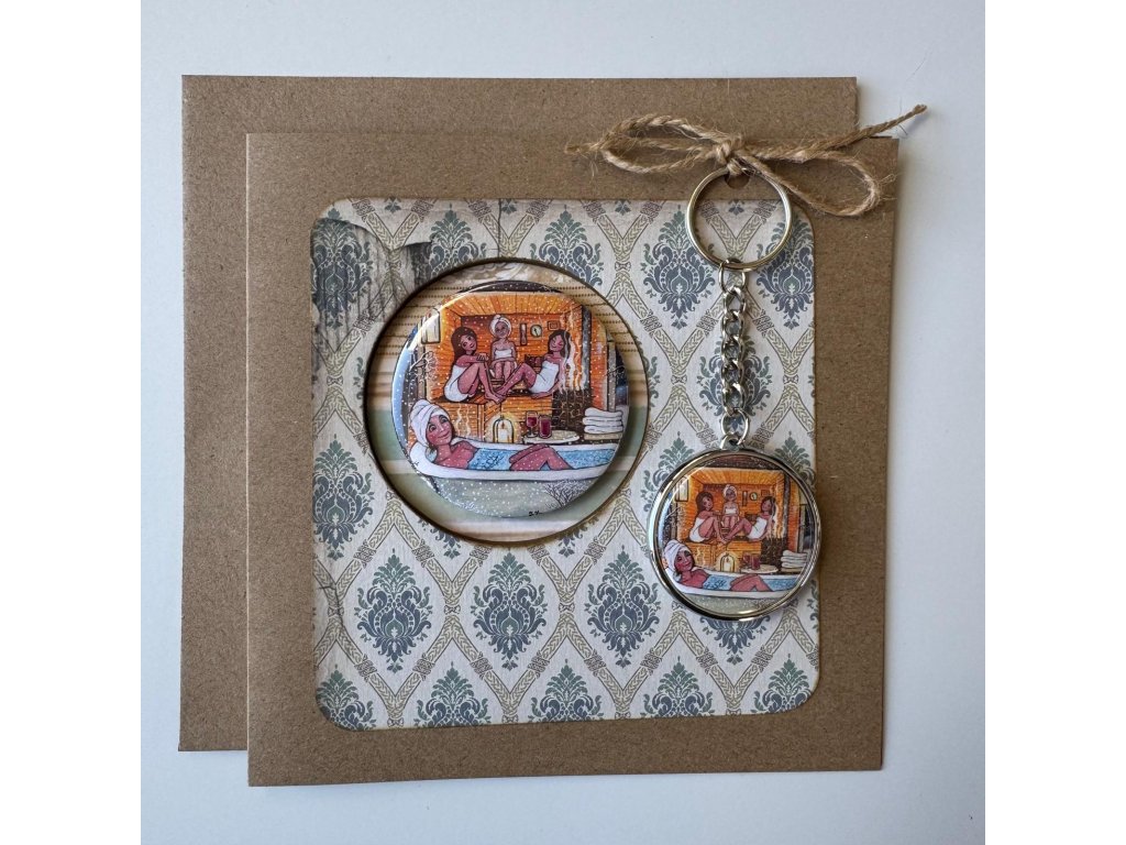 Přáníčko s magnetem a klíčenkou Saunička