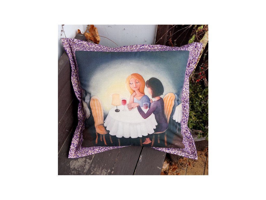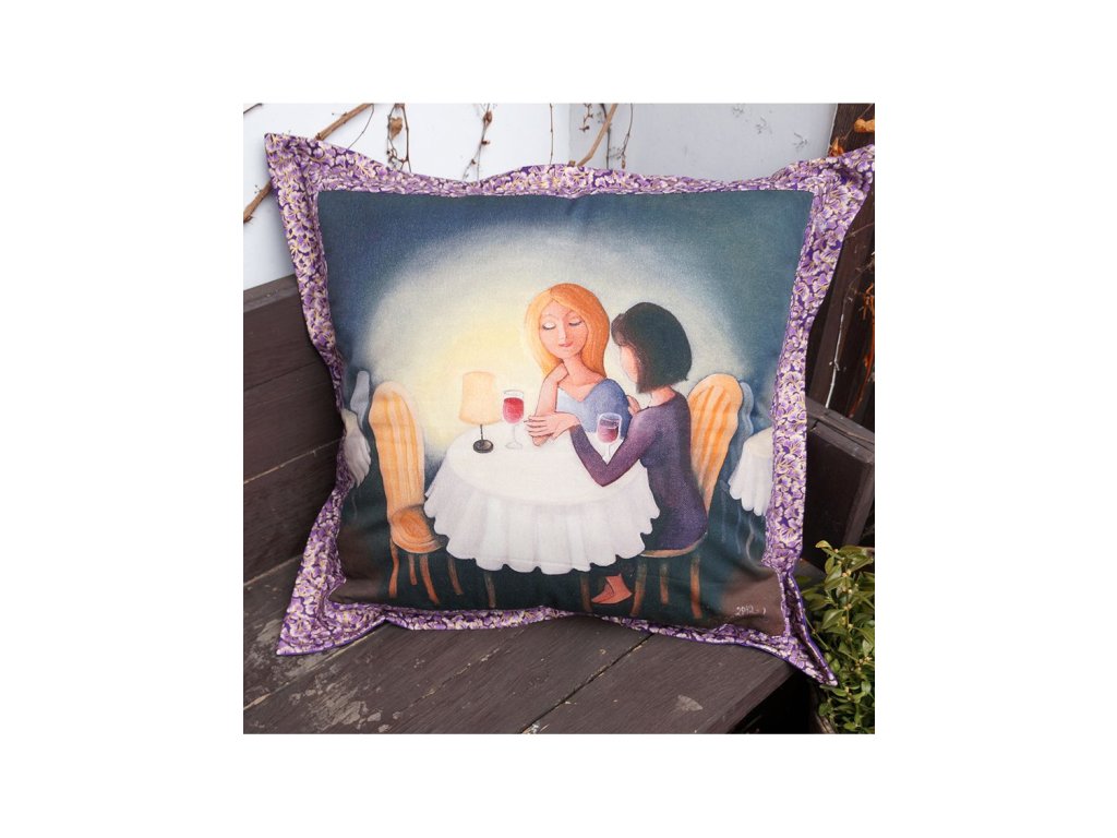 Na tuhle chvíli jsem se moc těšila - látka vytištěná v Německu -100% kvalitní bavlna.velikost polštáře 50 x 50 cm, plus ozdobný okraj. Zahraniční látky doplňující obrázek krásně ladí.