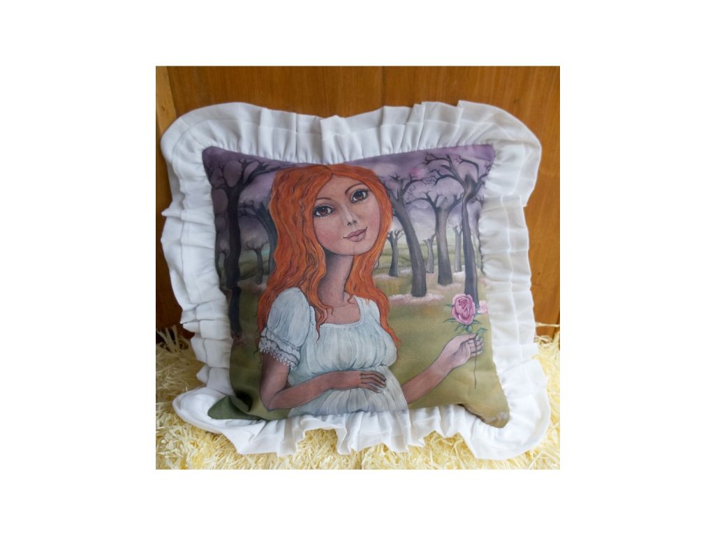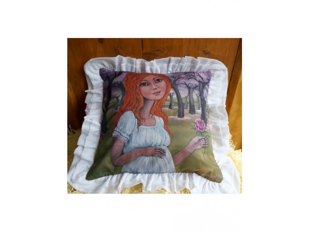 Přední strana podložená termolínem. Polštář je doopravdy velmi krásný , romantický..