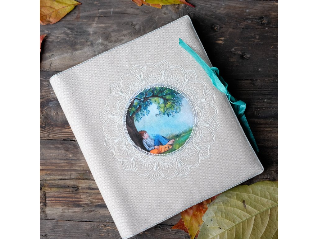 obal textilní s mým na látce vytištěným obrázkem a krásně okolo vyšivaným.
