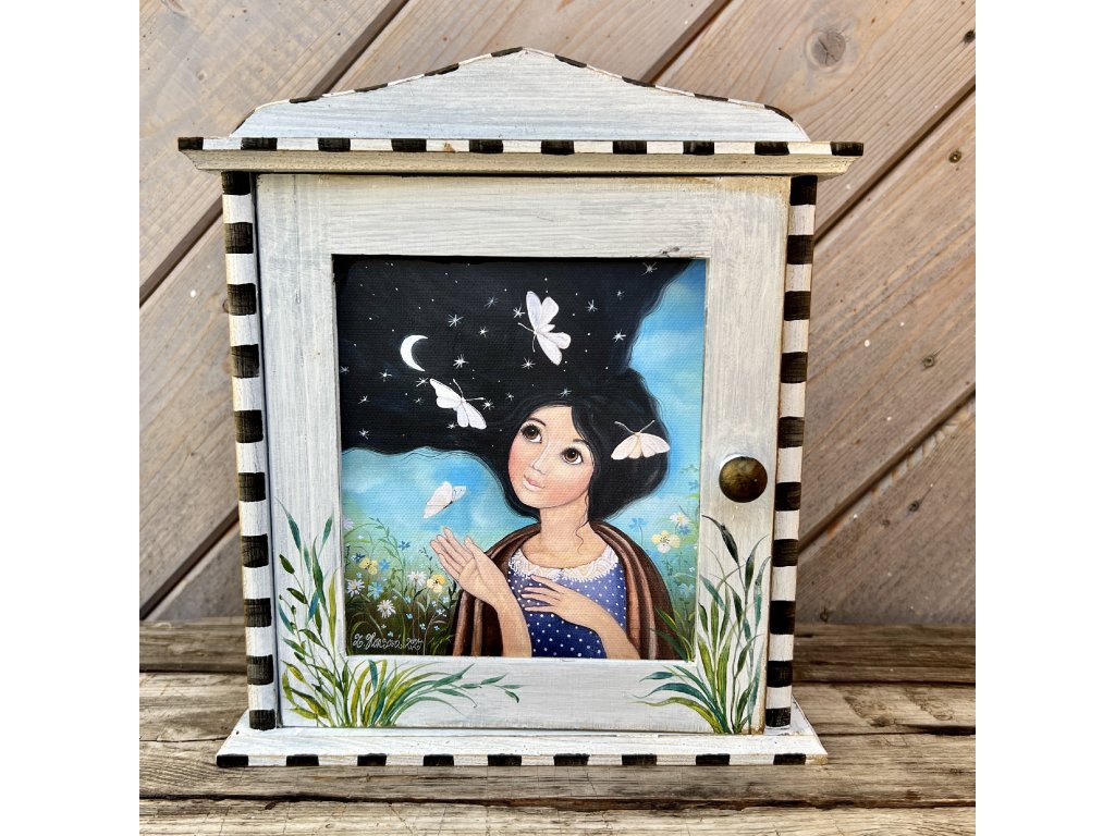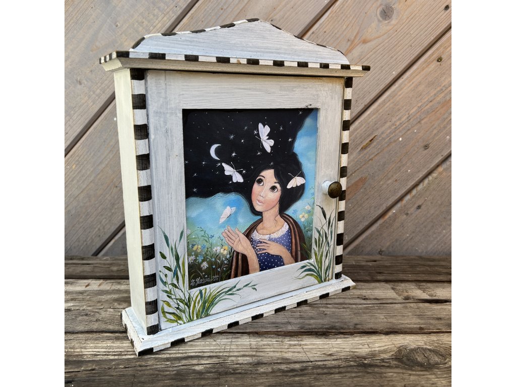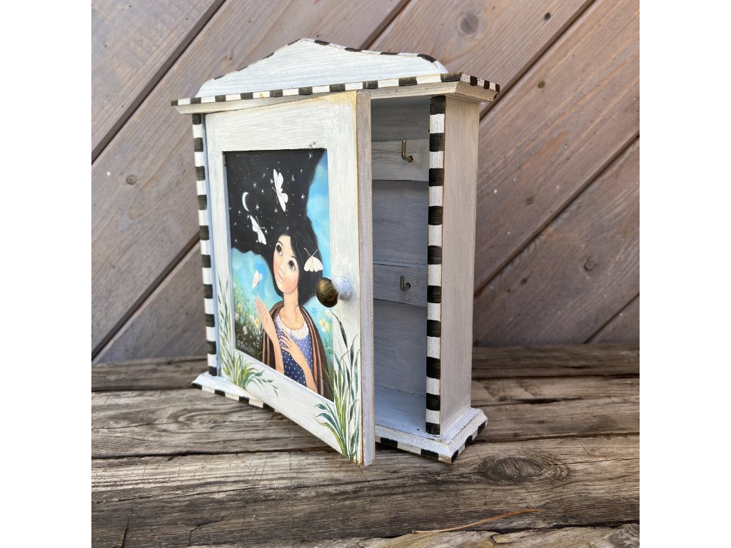 Dřevěná patinovaná skříňka na klíče