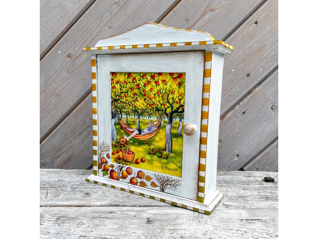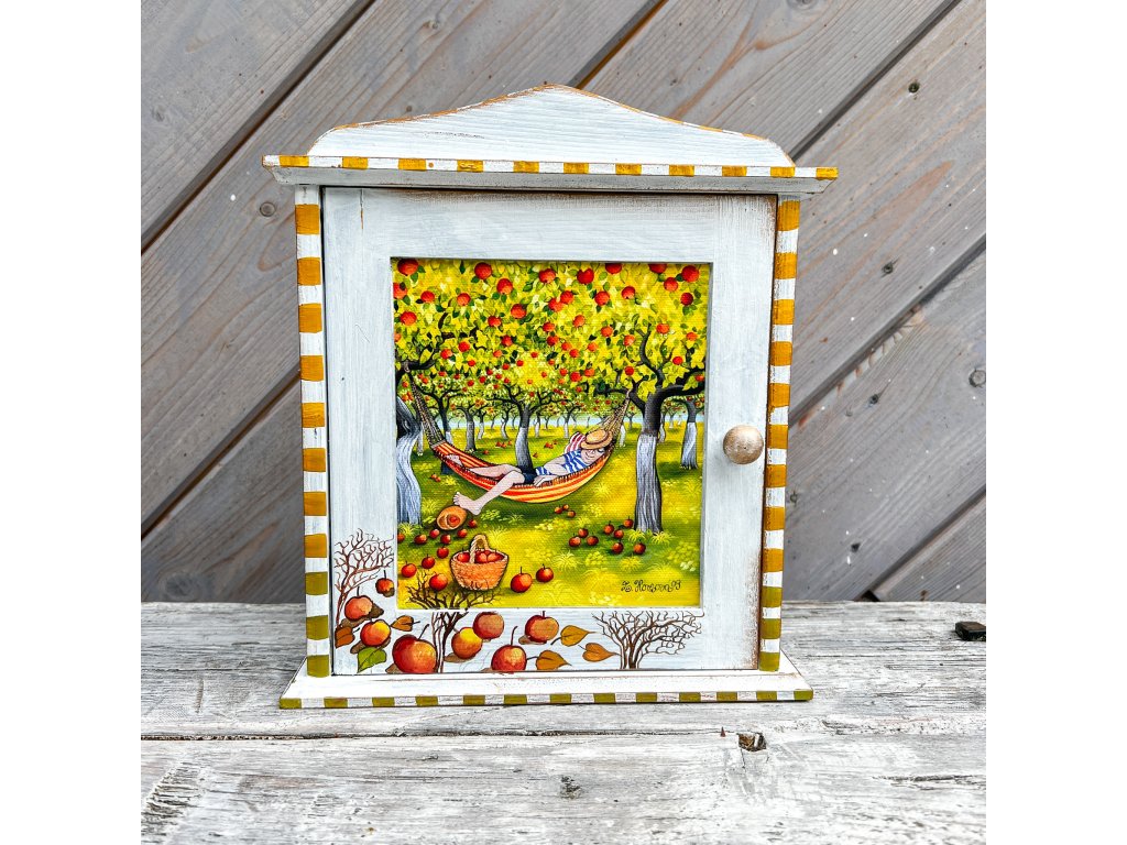 na dvířkách můj obrázek vytištěný na plátně a domalovávaný.