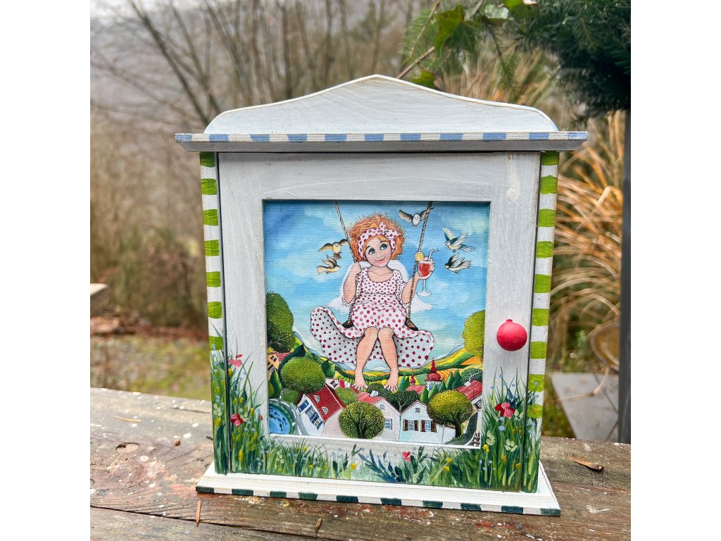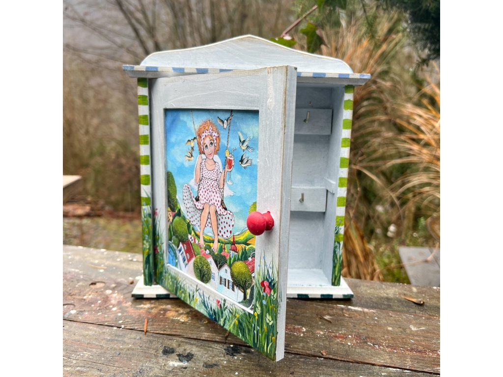 na dvířkách můj obrázek vytištěný na plátně a skřínka je domalovavaná.