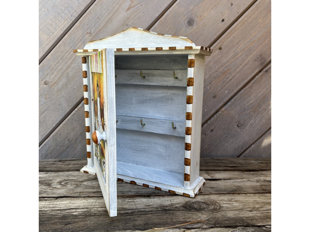 Dřevěná patinovaná skříňka na klíče