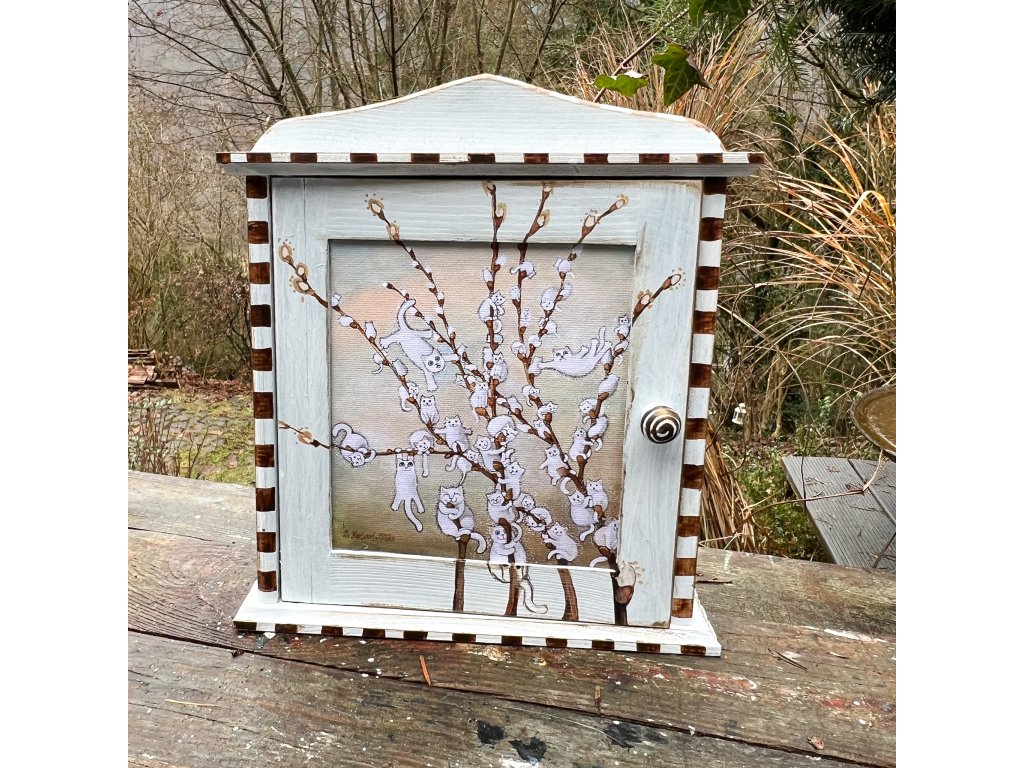 Dřevěná patinovaná skříňka na klíče