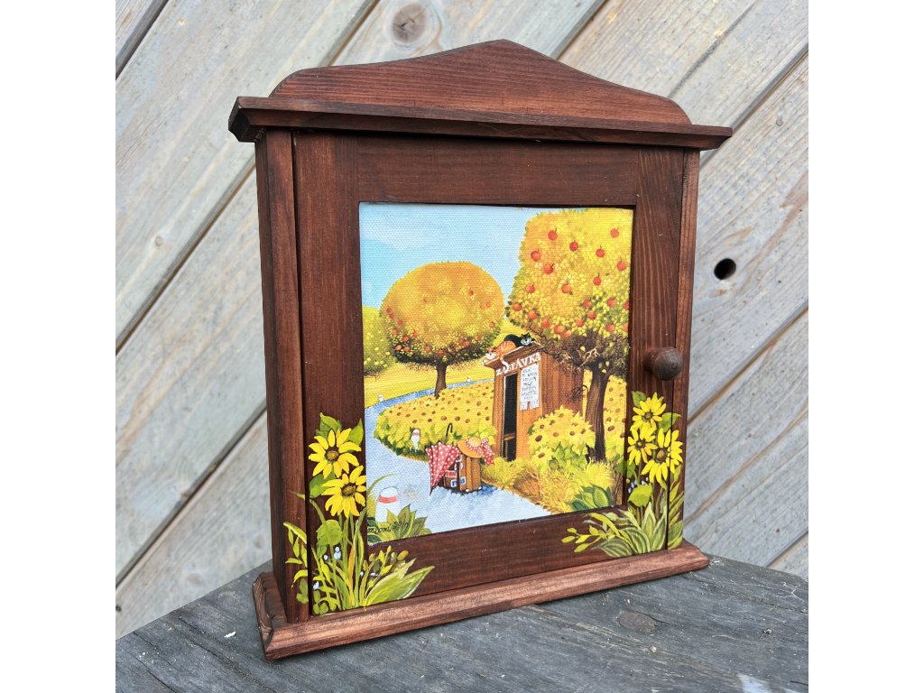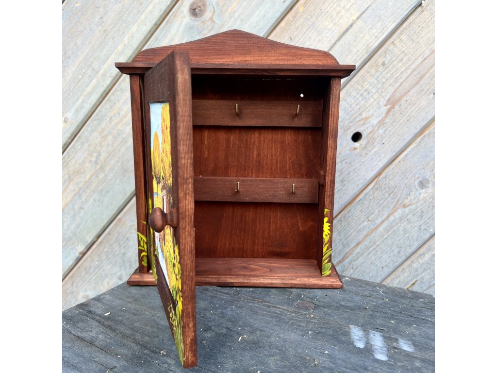 Dřevěná patinovaná skříňka na klíče