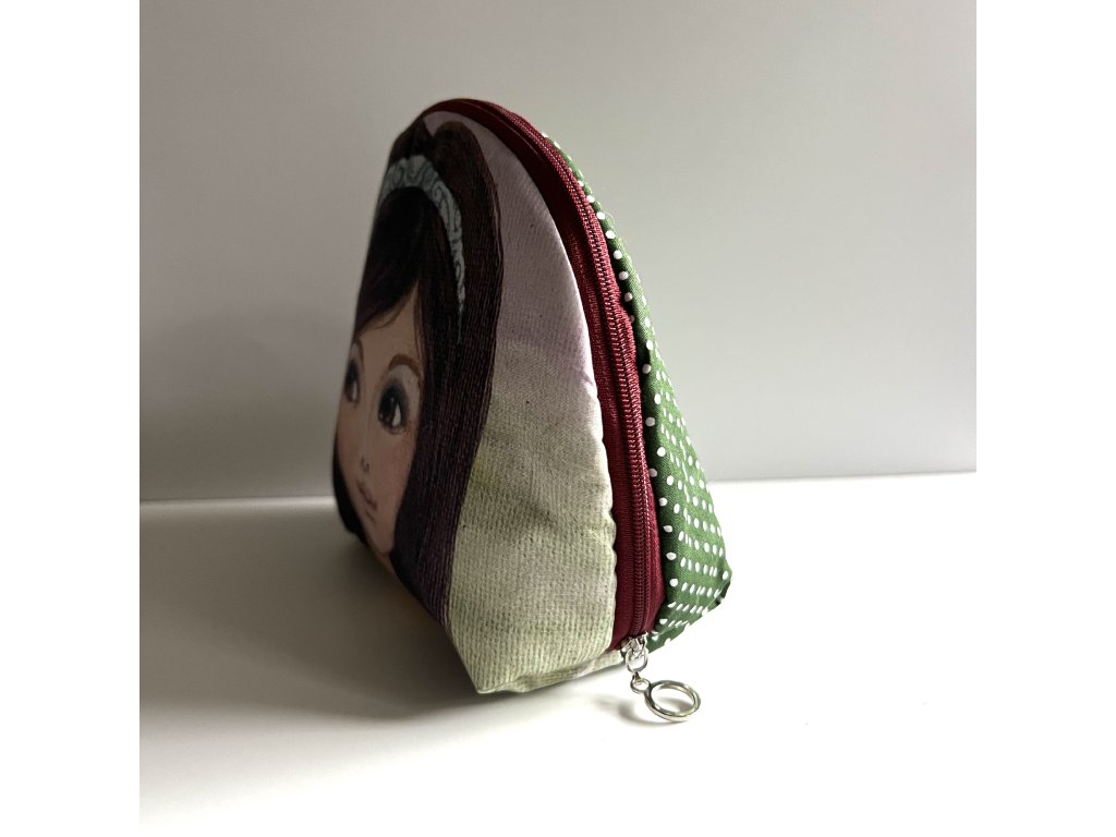 Menší, ale prostorná taštička na kosmetiku, podložená měkkoučká, vnitřek a zadní strana je barevně sladěná..