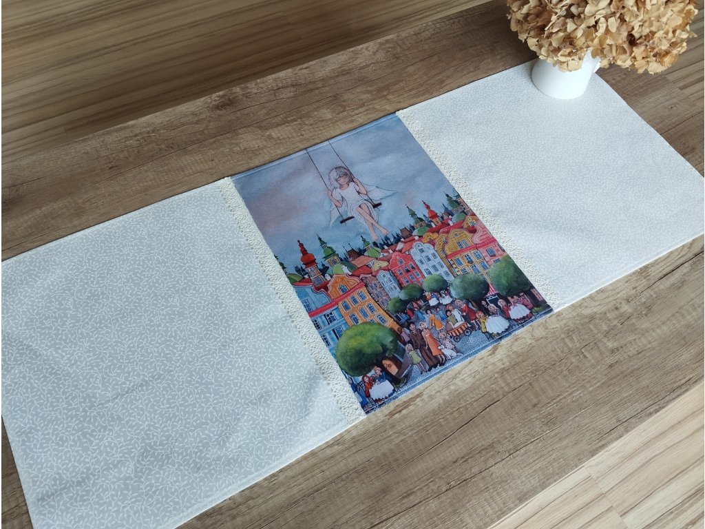 Velký krásný středový "běhoun" s mým obrázkem a krajkou.