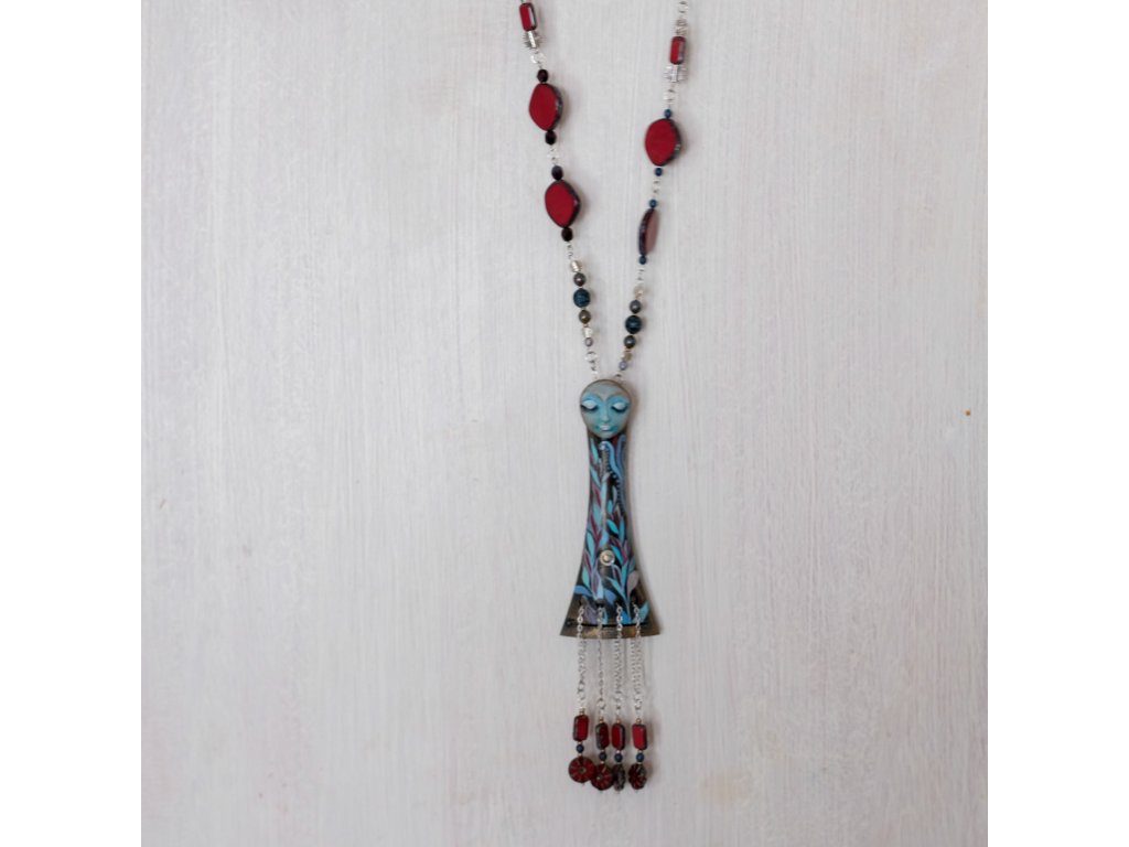 Výrazný originální náhrdelník z houslového struníku, zdobený korálky , které dlouho sbírám a vybírám aby hezky ladily. Řetízek je nerezový , jen malé korálky kovové jsou obecný bižuterní kov(bez niklu a kadmia). Moc mne to baví a je to takový můj relax.