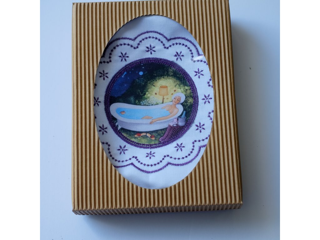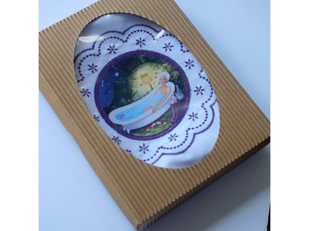 Okraje utěrky jsou dvakrát podehnuté a prošité, ve vrchním rohu je všité poutko na pověšení s materiálovým složením a pokyny k údržbě.