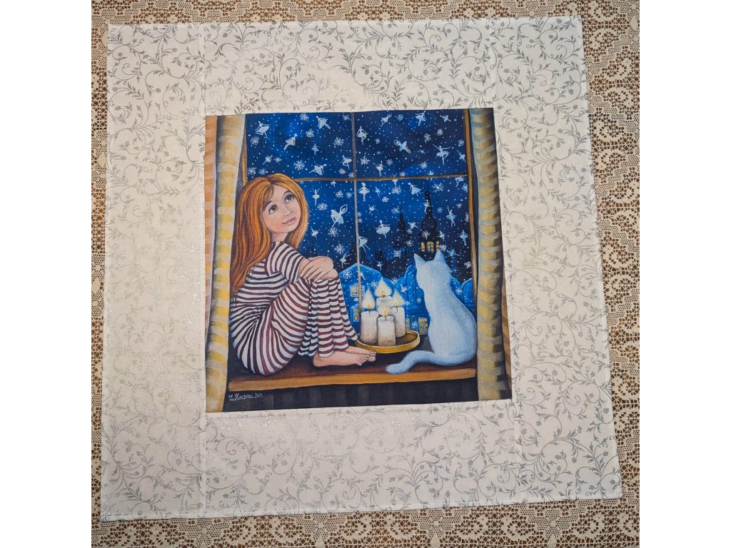 velikost 64 x 64 cm, Můj obrázek vytištěný bavlněném saténu ,doplněný krásnými zahraničními látkami.