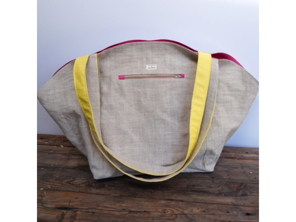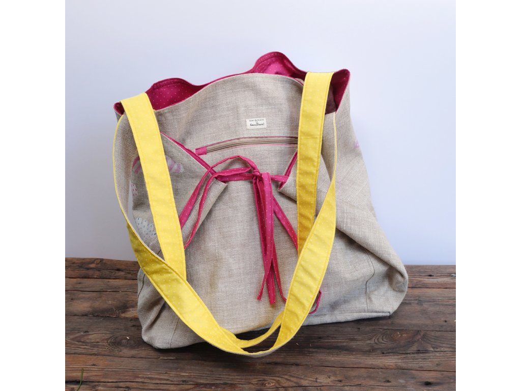 taška je veliká rozměry jsou: v nejširším místě 63 cm , dole 34 cm , vysoká 37 cm, hluboká 17 cm, je možno jí stáhnou dvěma "tkaničkami" na svázání - čímž se ohnou rohy a taška je pak menší. Nebo stáhnout šnůrkami uvnitř a vznikne takový vak.- taška je velmi varoiabilní